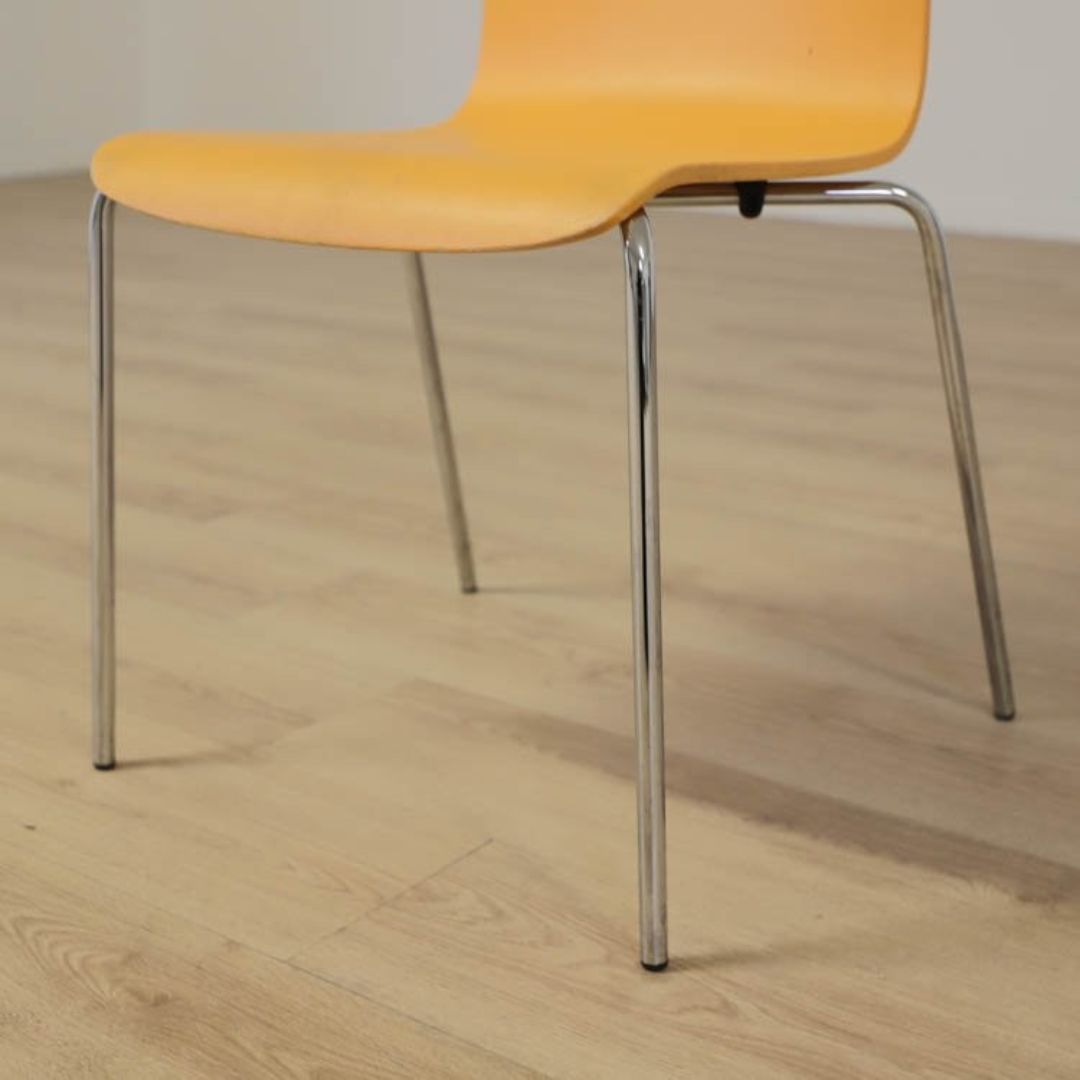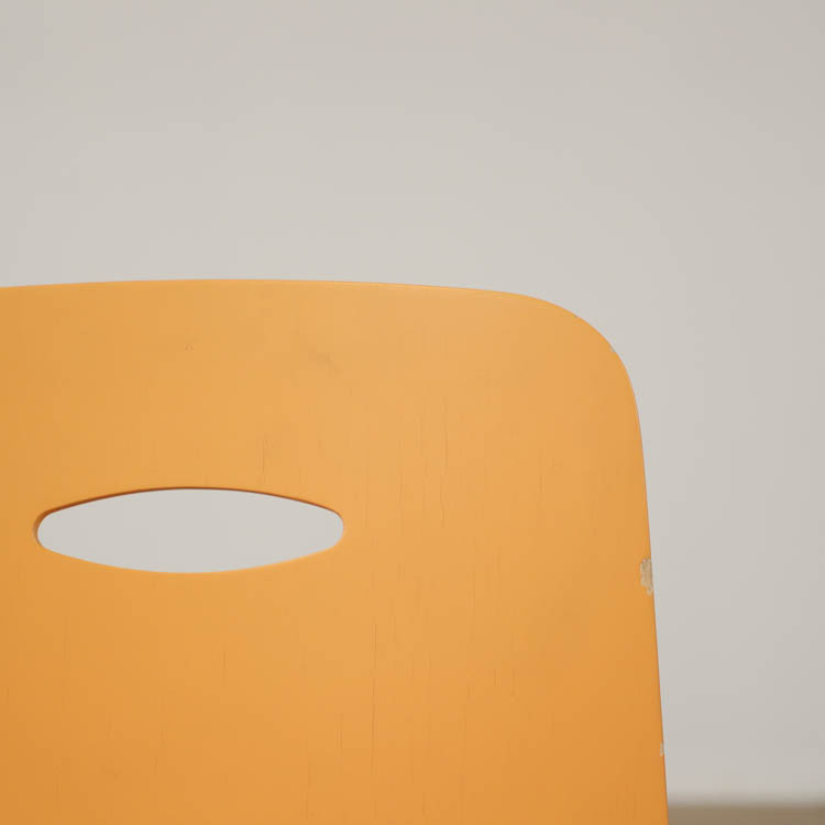Det förekommer mindre skador på sittdelen och ryggen, med synliga nagg och märken.Se bildvyn för närmare granskning.