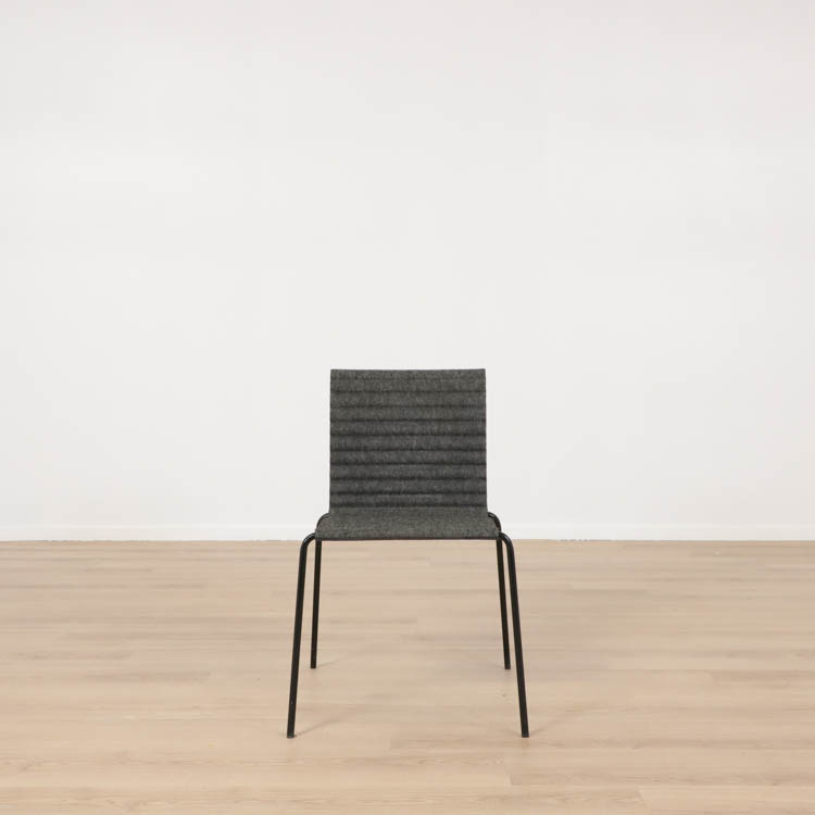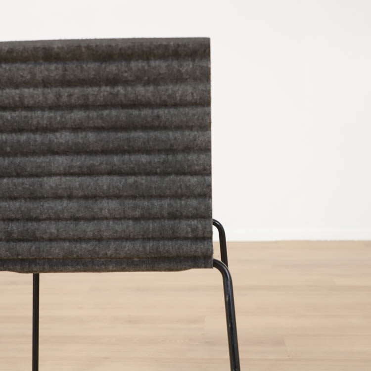 Den staplebara konferensstolen Rib är formgiven av Alexander Lervik och är det självklara valet i många konferensrum. Sitt unika formspråk får stolen till följd av vågformen och valet av filt som material, tillverkad av återvunna PET-flaskor. Medar i svart som ger stolen ett djärvt utseende. Både miljövänlig, snygg design och stapelbar!
