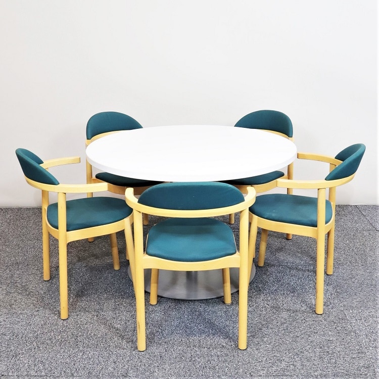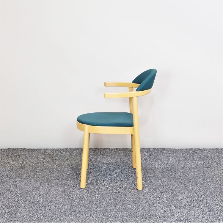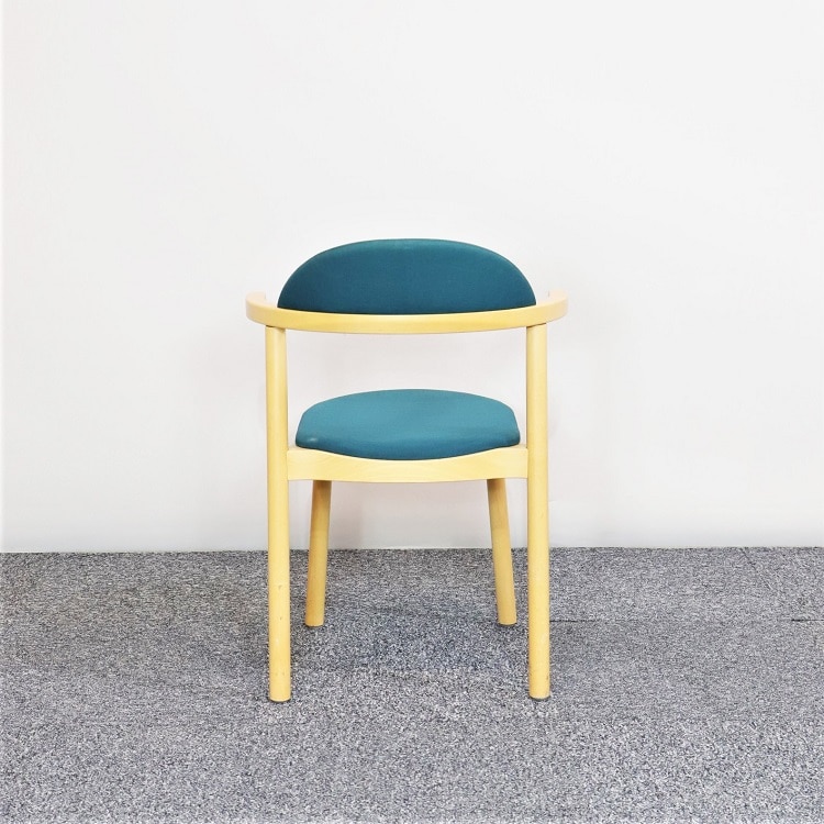 En klassiker som lanserades redan 1982 och har förblivit populär tack vare de praktiska armstöden som inte bara gör stolen bekväm, du kan dessutom hänga upp den. SAR är även stapelbar vilket är smidigt för flexibla utrymmen. Sits och rygg klädd i grönt tyg och konstruktion av trä.