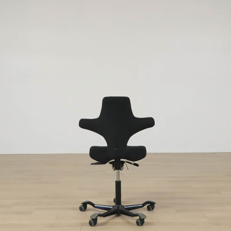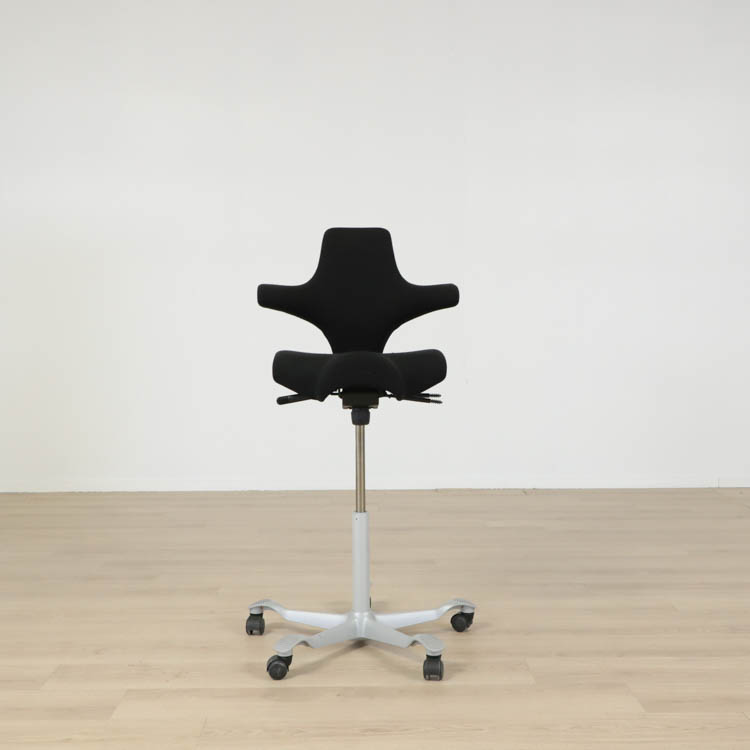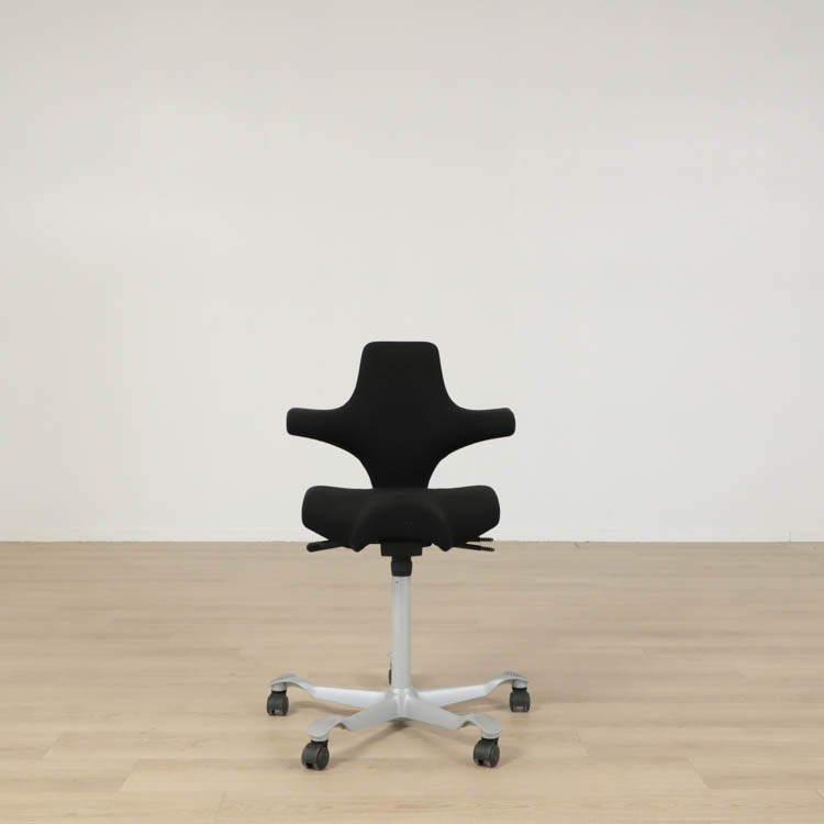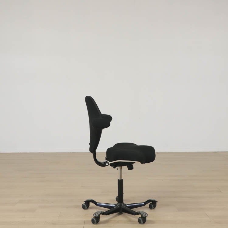 En smart kontorsstol från HÅG som erbjuder en stor variation av sittmöjligheter. Du kan ställa in sitthöjd, sittdjup samt ryggstödshöjd för bästa komfort utifrån dina önskemål. Du kan dessutom vända på stolen och använda dig av ryggstödet som ett stöd för magen istället. Även gungmotståndet är justerbart och låsbart. Det gör att Capisco 8106 från HÅG erbjuder en både dynamisk och ergonomisk sittupplevelse. Denna stol finns med kort, medium eller hög patron.