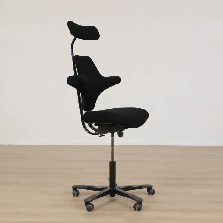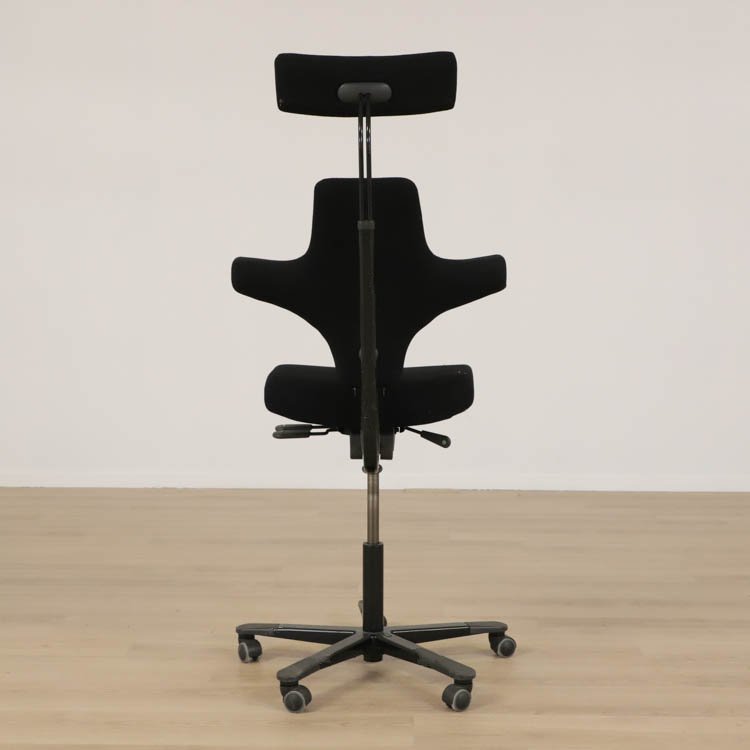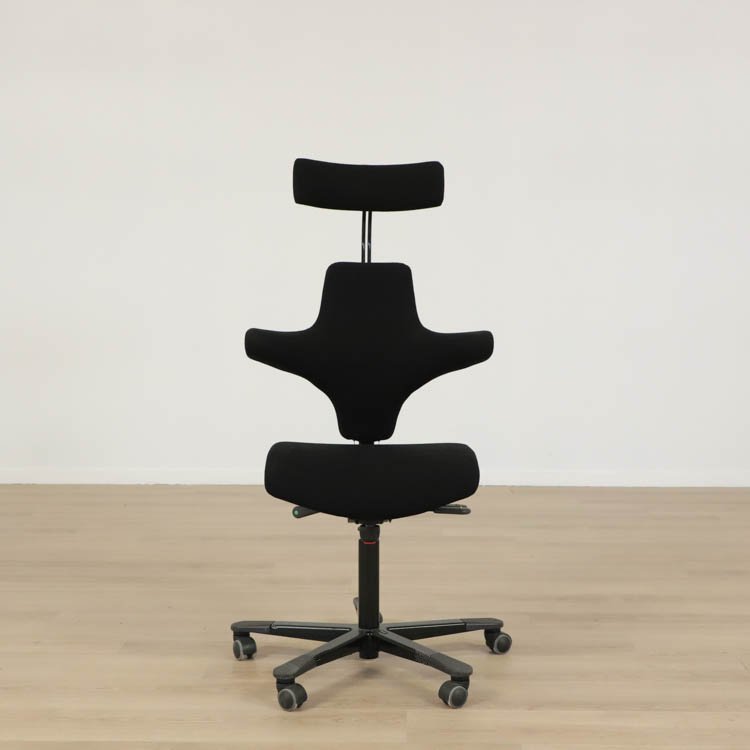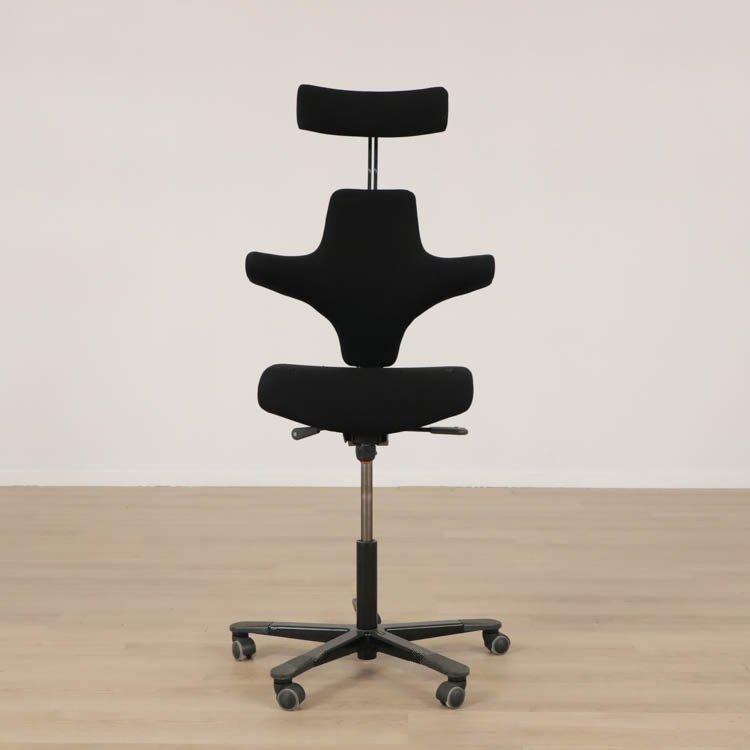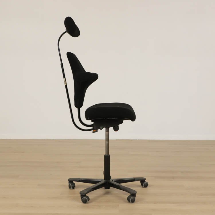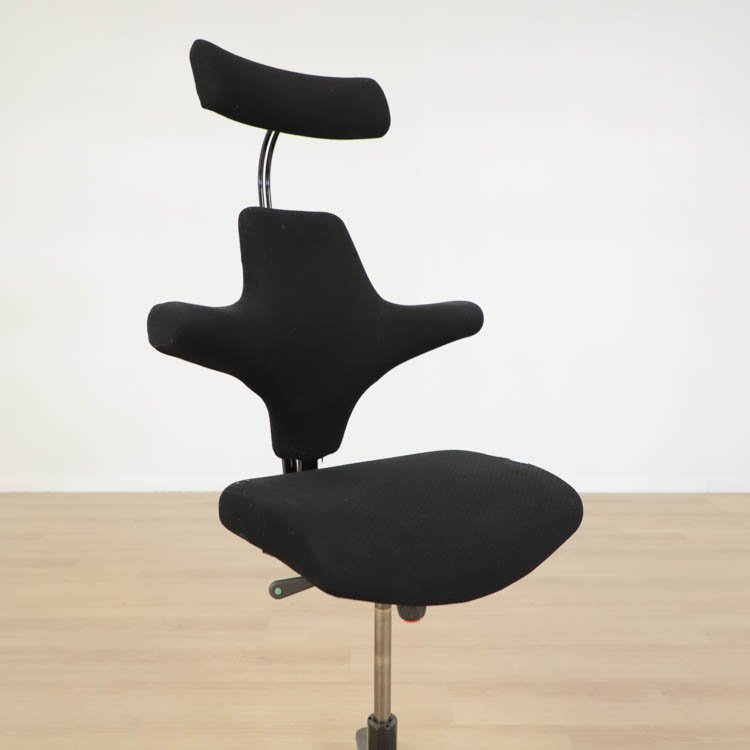 En smart kontorsstol från HÅG som erbjuder en stor variation av sittmöjligheter. Du kan ställa in sitthöjd, sittdjup samt ryggstödshöjd för bästa komfort utifrån dina önskemål. Du kan dessutom vända på stolen och använda dig av ryggstödet som ett stöd för magen istället. Även gungmotståndet är justerbart och låsbart. Det gör att Capisco 8127 från HÅG erbjuder en både dynamisk och ergonomisk sittupplevelse. Stolen kommer klädd i svart tyg och medium patron, finns med svart eller grå fot.