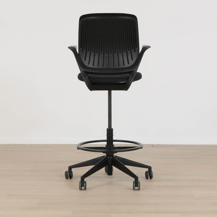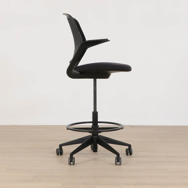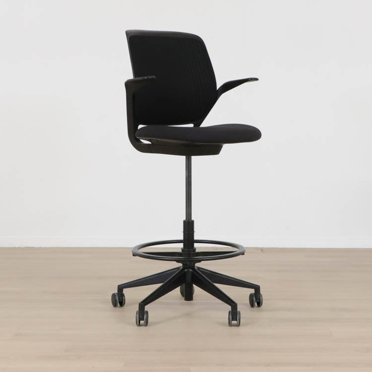Kontorsstolen Cobi är designad för att främja rörelse och hjälper till att stödja olika ställningar. Cobi fokuserar på enkelhet och har därför endast en höjdjustering och en viktaktiverad mekanism, som automatiskt anpassar dig efter din kropps tyngdpunkt. Vilket gör att du snabbt och enkelt kan sätta dig bekvämt. Den böjda ryggkonturen stödjer din kropp och rygg. Då armstöden är svävande kan du sitta i vilken riktning du än önskar, antingen centrerat eller åt sidan. Denna stol kan kombineras utmärkt med höj- & sänkbara bord av alla typer. Har du ett höj- & sänkbart konferensbord där alla inte vill stå upp samtidigt, så kan de höja upp stolen till hela 83 cm höjd! Stolen har en hög gaspelare samt en snygg fotring för extra avlastning för ben och rygg.