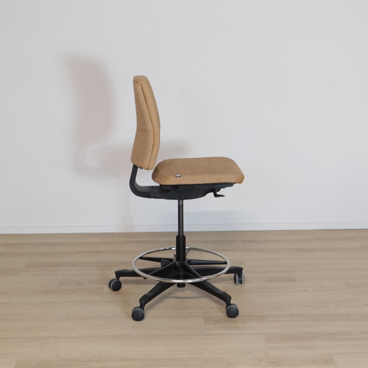Klädsen på One kontorsstol har en nougatbeige nyans i ett slitstarkt tyg samt ett ryggstöd i lätt svängd form med ett andningsbart material som uppfyller bättre cirkulation under längre sittande perioder på arbetsdagen. One har även en utfyllnad vid svanken som enkelt följer kroppen, och nedtill en fotring i rund form. Allt detta för att ge dig extra komfort och avlastning för att uppnå bästa ergonomi för hela kroppen.