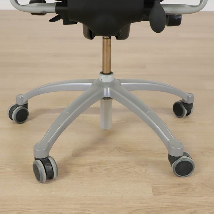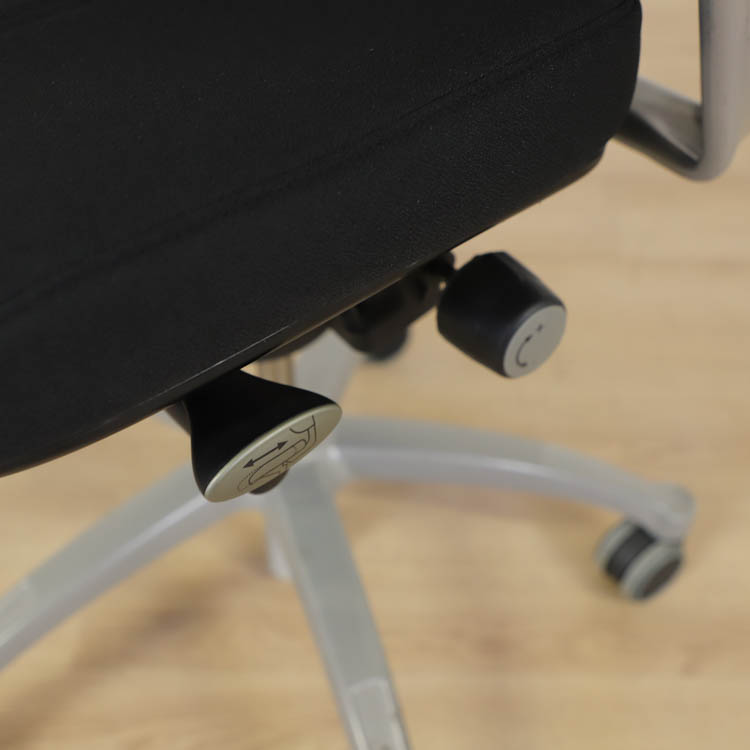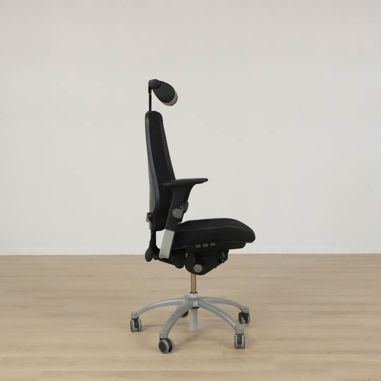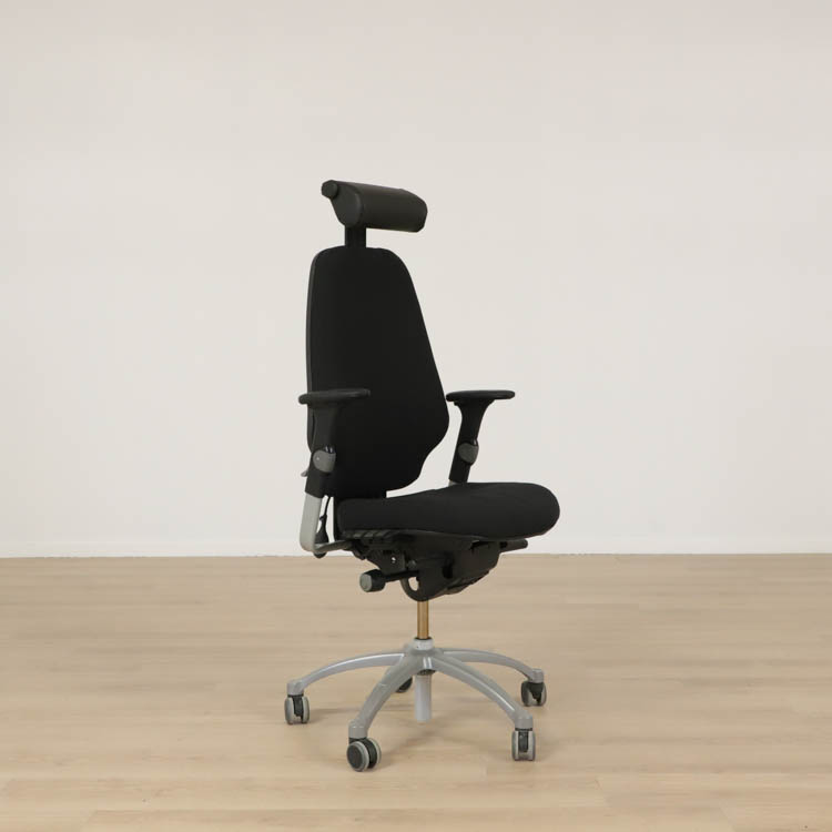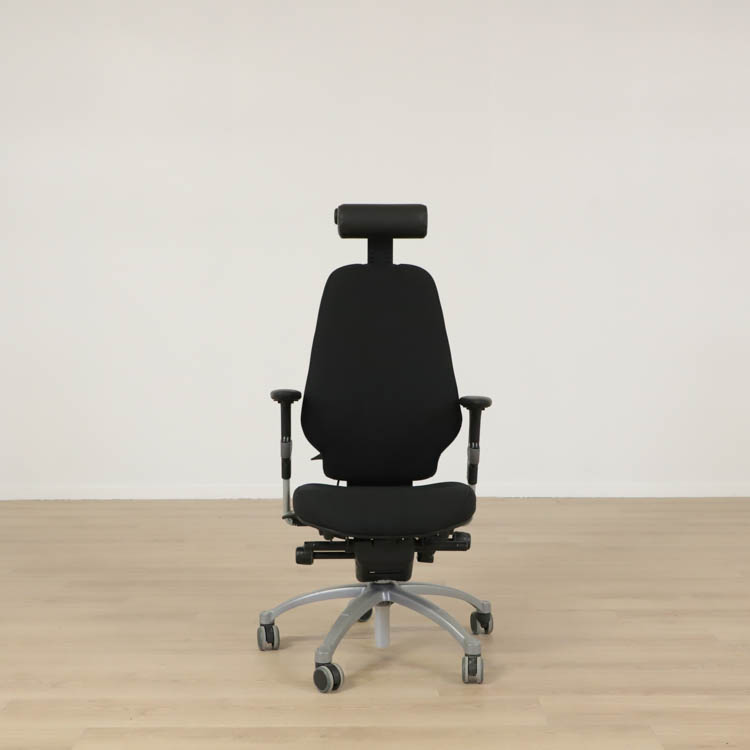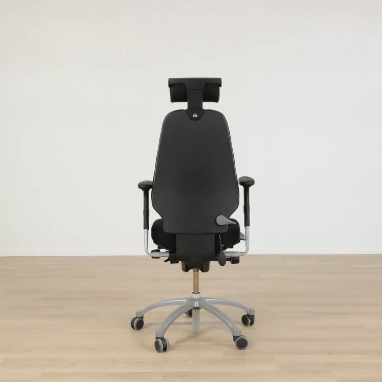 Kontorsstol RH Logic 400 erbjuder dig en ergonomisk position med stora variationsmöjligheter för individanpassning. RH Logic är det utmärkta valet för dig som till stor del arbetar sittandes då stolen uppmuntrar till en upprätt ställning vilket ökar effektiviteten genom ökad syreupptagning. Rygg och nackstöd har flertalet regleringsmöjligheter, bland annat luftreglerat svankstöd samt höjd- och vinkelreglage. Allt för att anpassa efter just dina preferenser. Stolen är även självklart höj- och sänkbar och för bästa ergonomiska sittupplevelse så kan du även ställa in sitsen i djupled samt att sitsen har en gunga där motståndet är inställbart. Stolen är klädd i svart högkvalitativ klädsel som är helt ny. Logic 400 har en snurrbar kryssfot på hjul. Reglagen kan finnas som tre knappar på en sida som sitsen eller två knappar på ena sidan och en knapp på den andra, observera att båda varianter har samma reglage och har bara en mycket liten estetisk skillnad.