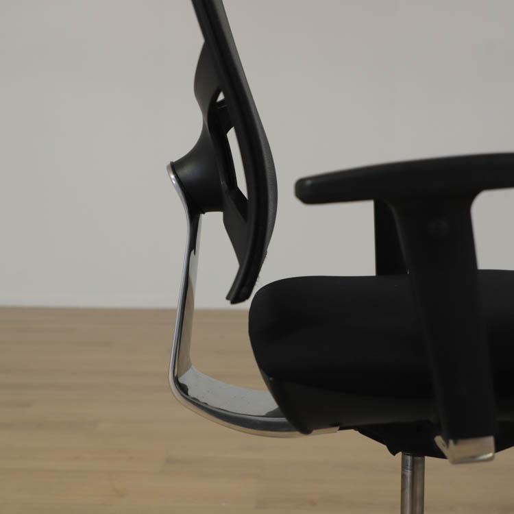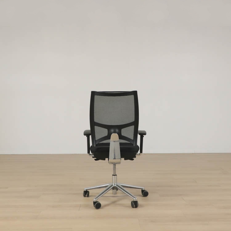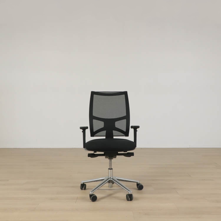 Den justerbara sitsen och armstöden möjliggör individuell anpassning för maximal ergonomi, medan den synkroniserade gungmekanismen främjar en naturlig sittställning och rörelsefrihet. Den kromade foten ger både stabilitet och en stilren, professionell finish.