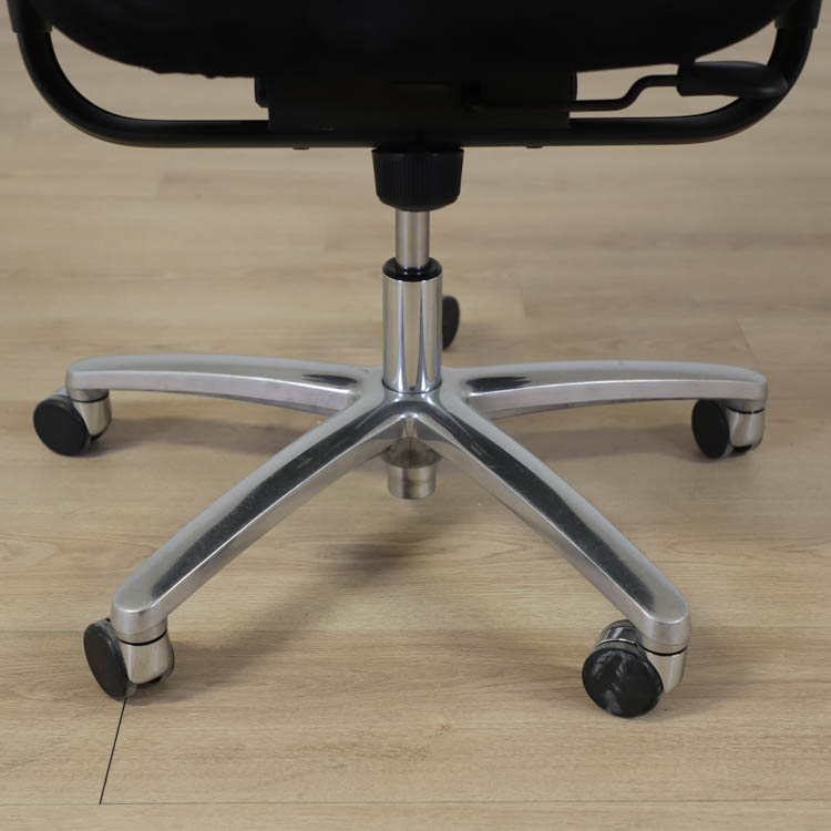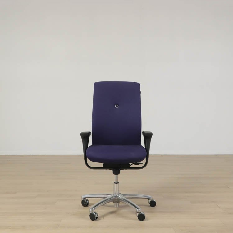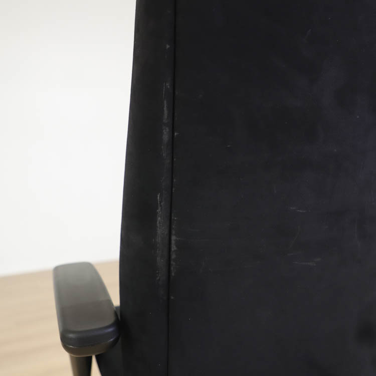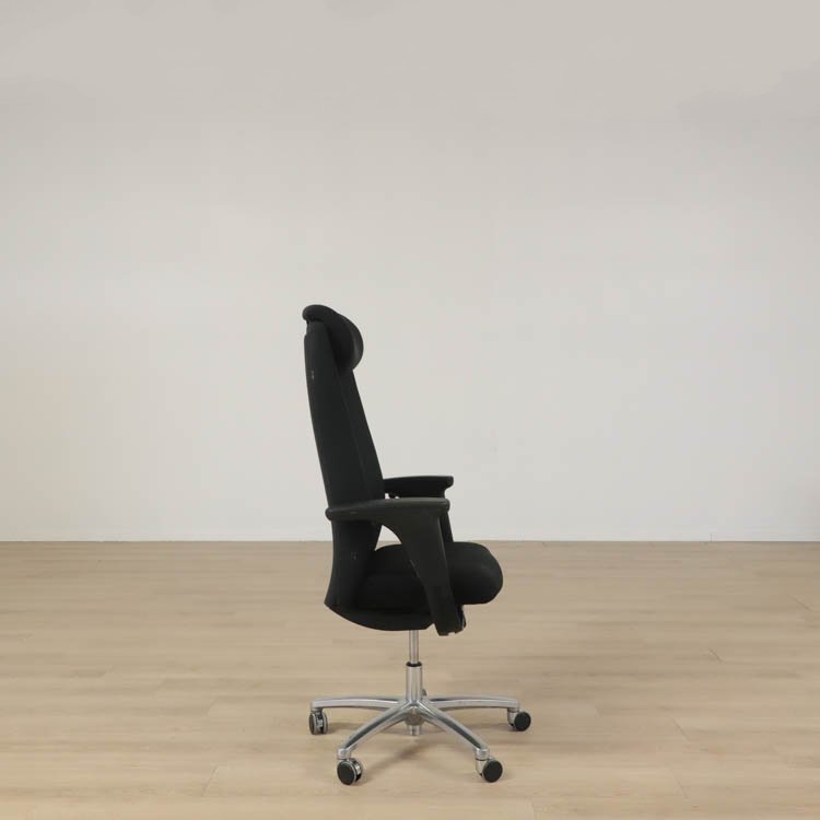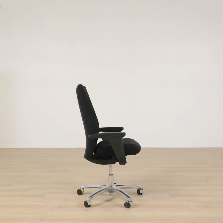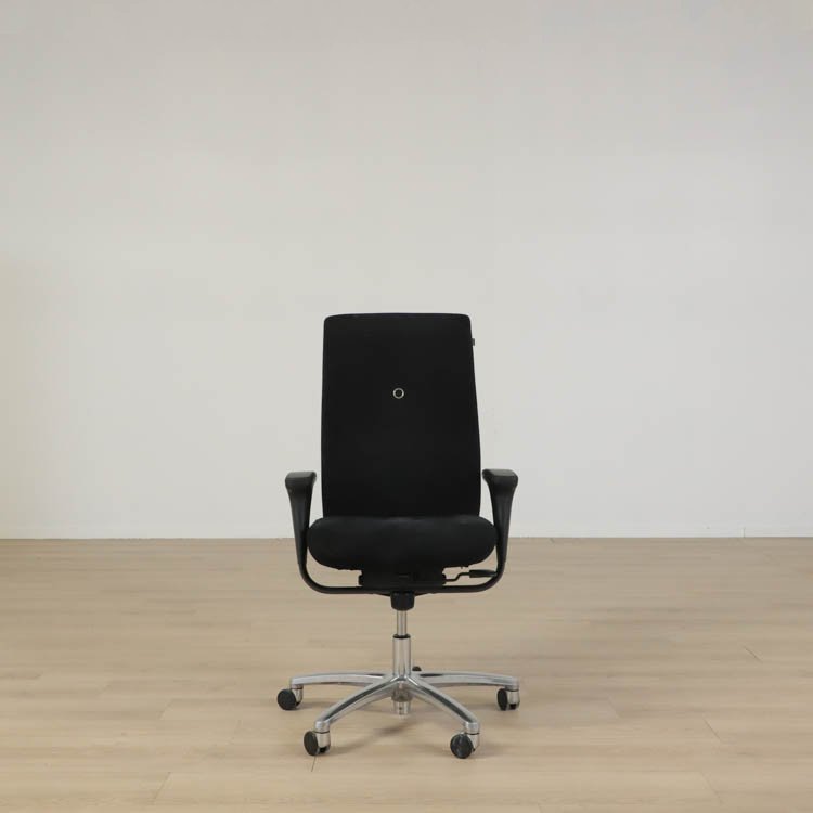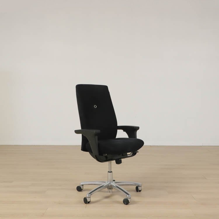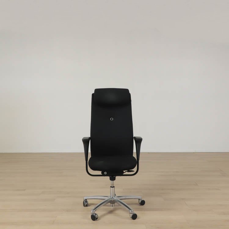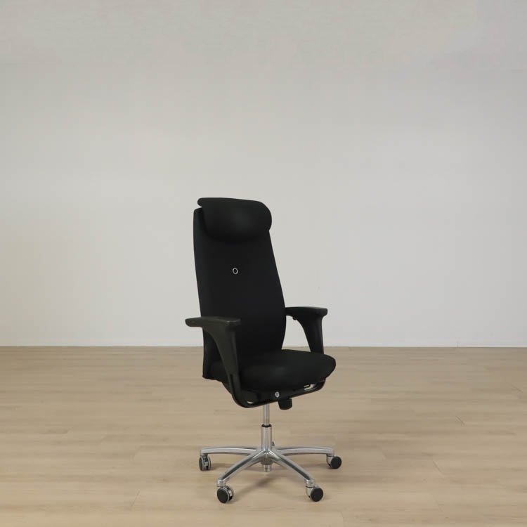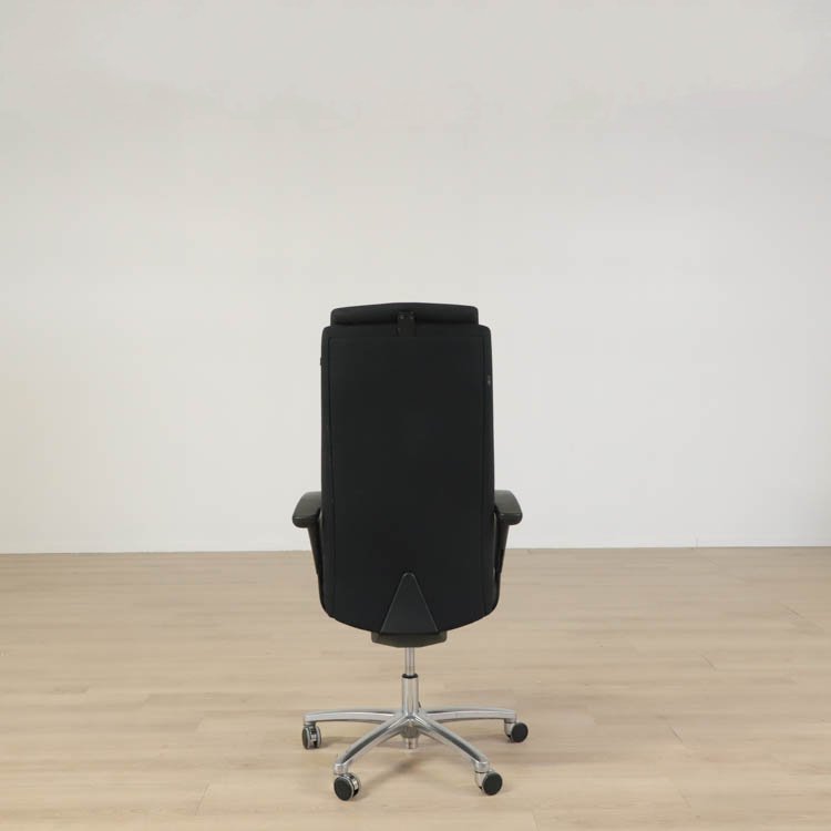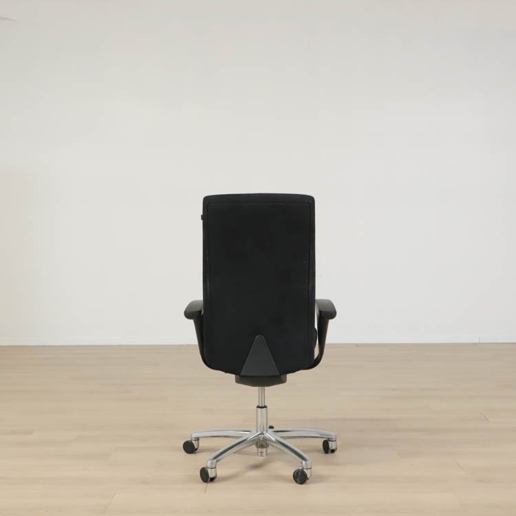 Kontorsstolen i svart med hög rygg kommer med ny klädsel på armstöd.