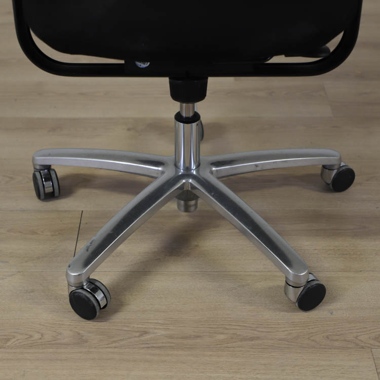 Svart Kontorsstol Skick 3 – Stolen har avvikelser i form av slitningar i tyget på ett område i ryggen. Se detta närmare i bildvyn.