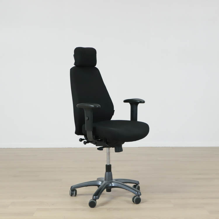 En kontorsstol med mångsidiga regleringsmöjligheter och hög sittkomfort. Nackstödet tillsammans med det höga ryggstödet ger stöd åt korsryggen samt övre rygg. Justerbara armstöden samt justerbar sits i höjd och djup. Sits och ryggstöd kan reglera lutningen för en ergonomisk position vilket är viktigt vid långa arbetsdagar.