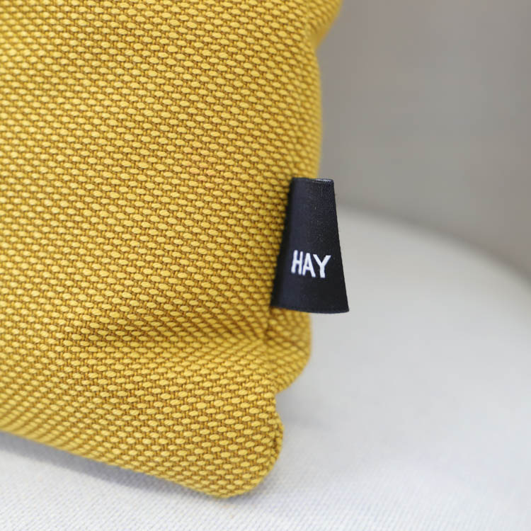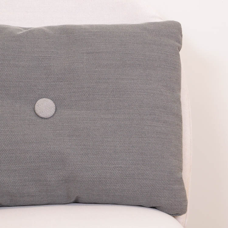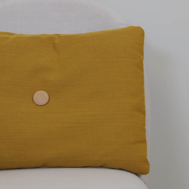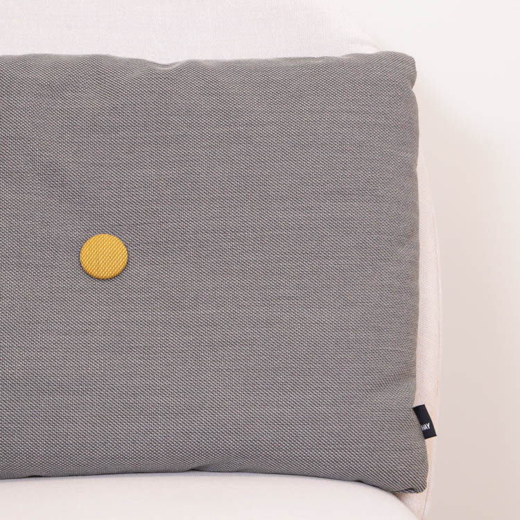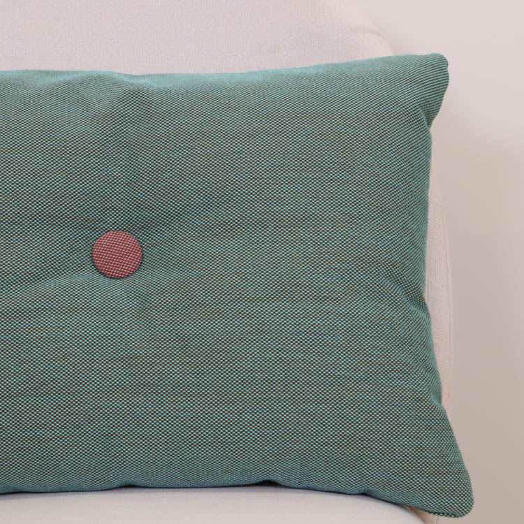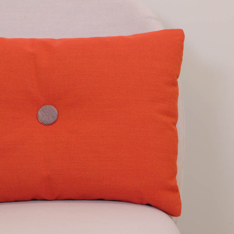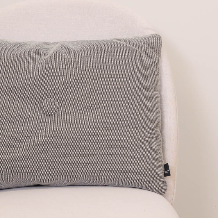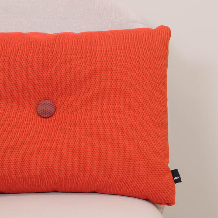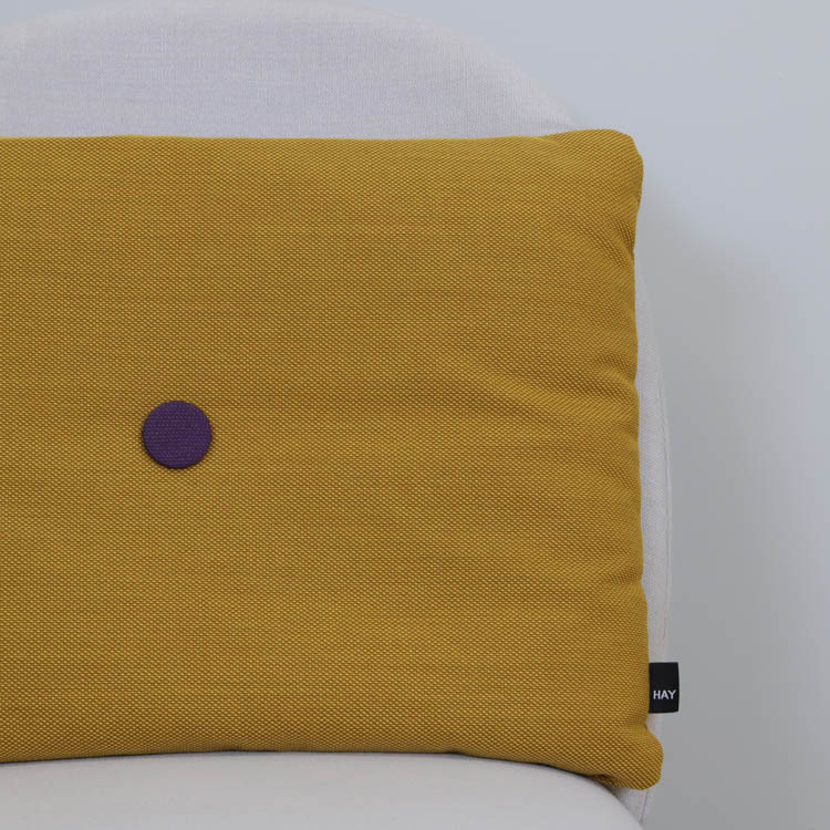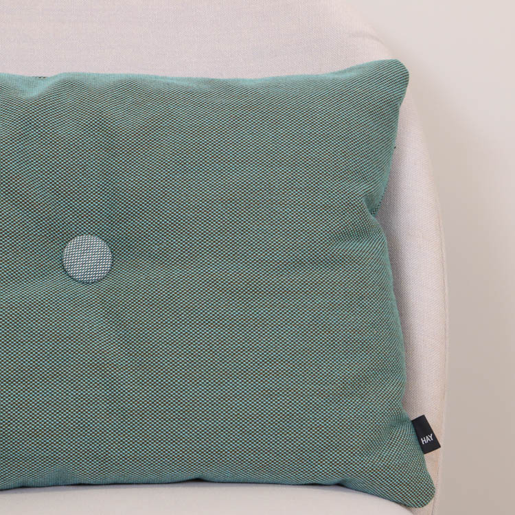 Färgglada kuddar från Hay är ett utmärkt sätt att lägga till en färgklick och personlig touch till ditt hem. Placera dem på en neutral soffa eller fåtölj för att skapa en visuell kontrast som drar till sig uppmärksamhet. Du kan också kombinera flera kuddar i olika färger och mönster för en eklektisk och dynamisk look. De stora knapparna i mitten av kuddarna ger dem en lyxig känsla och skapar en subtil textur som förhöjer både utseende och komfort. Varje kudde har två knappar per sida, och för att göra kuddarna extra kreativa är knapparna i olika färger på vardera sida. Detta gör det möjligt att variera vilken sida av kudden som visas, vilket ger en mer lekfull och inbjudande atmosfär där de placeras.