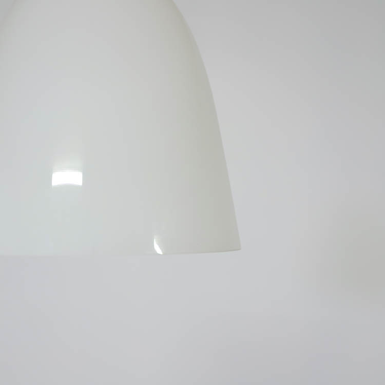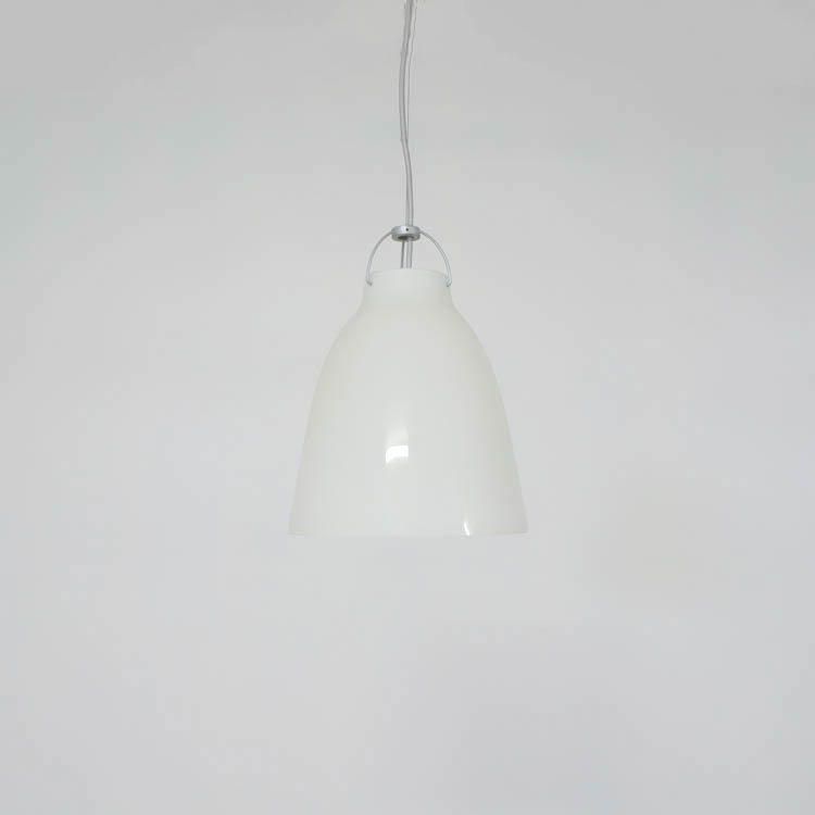 Caravaggio Opal designad av Cecilie Manz för Fritz Hansen, är en ikonisk pendellampa som förenar skandinavisk minimalism med elegans. Lampans skärm har en distinkt kupolform i handblåst opalglas och upphängningsanordningen är gjord i lackerat stål. Den djupa skärmen ger ett riktat, bländfritt ljus, idealiskt för matbord, köksöar eller andra ytor där fokuserad belysning behövs. En subtil öppning på skärmens ovansida tillför mjukt uppåtriktat ljus, vilket skapar en behaglig atmosfär.