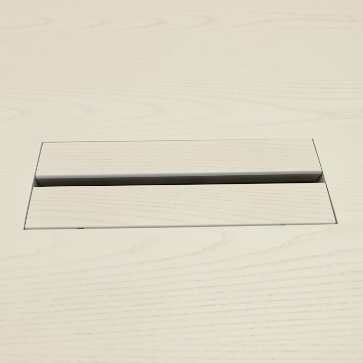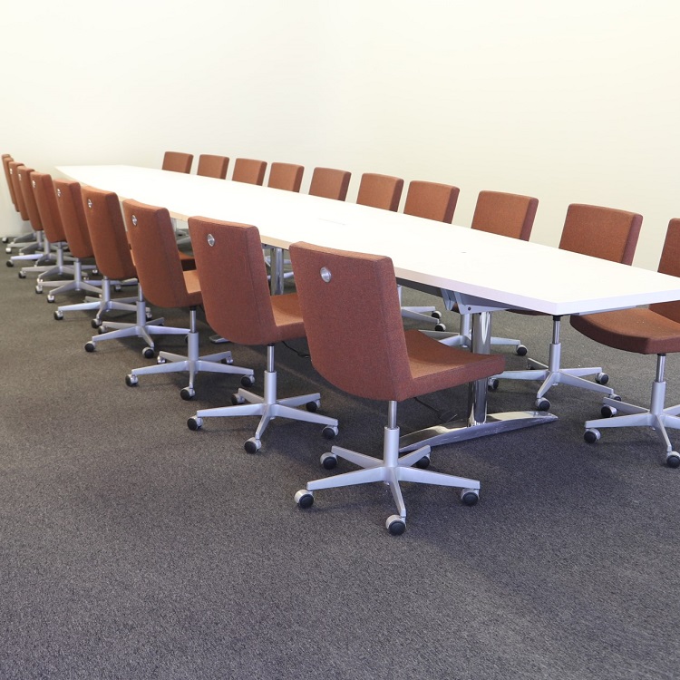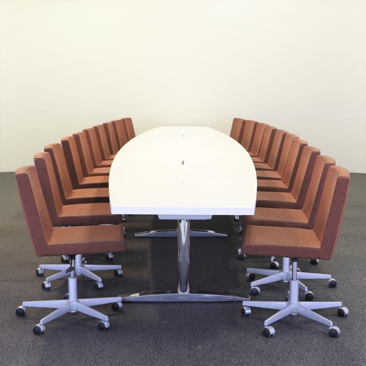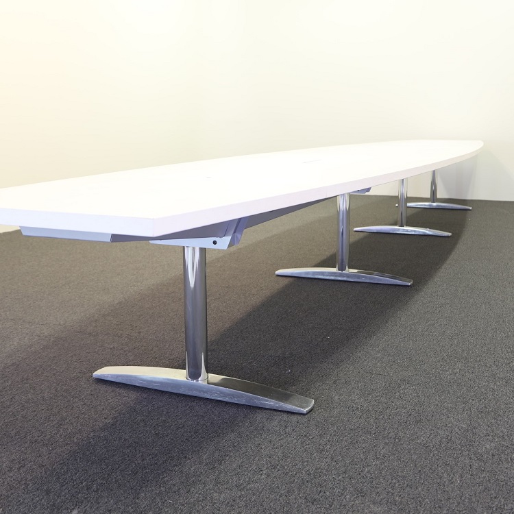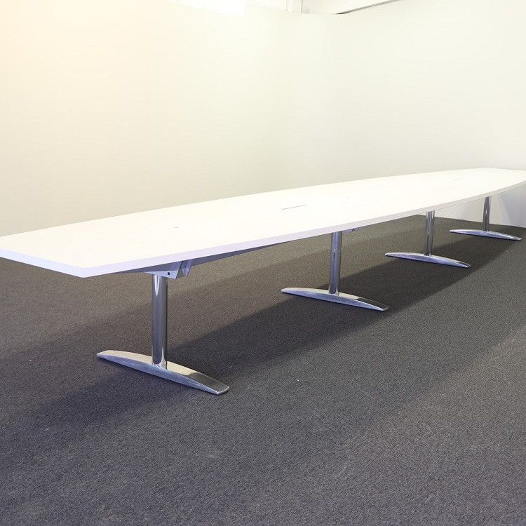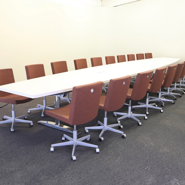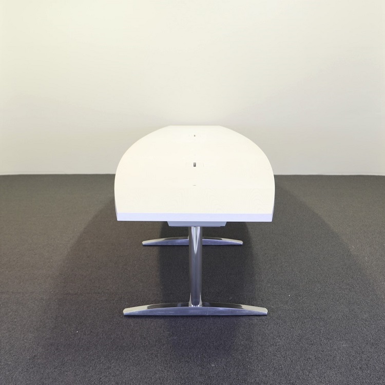 Trots sin längd på 7 meter och generösa yta för många personer upplevs ändå det här bordet som smidigt och luftigt. Bordet är båtformat vilket gör att man sitter som i en båge. Denna bordsform underlättar för de personer som sitter längst ut mot kanterna att se personerna på andra sidan vilket skapar mer gemenskap mellan alla sittande. Bordsskivan är vitlaserad trä med två kabelluckor utrustade men el- och nätverksuttag för att få en större och mer organiserad arbetsyta.