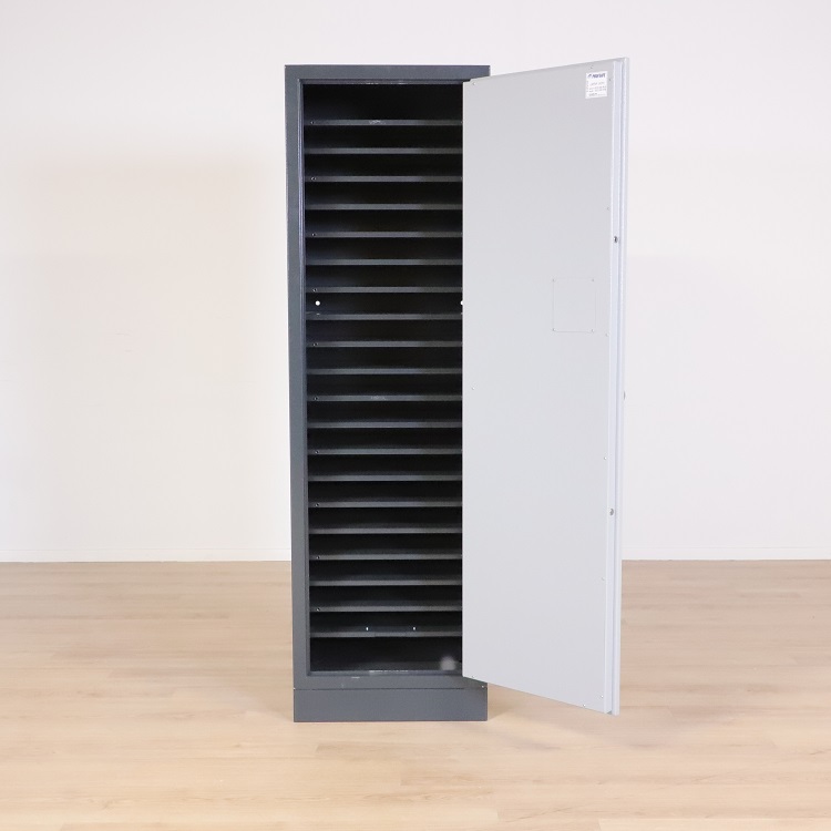 Laptopskåp S1900/Laptop20 är den optimala förvaringen för att på ett säkert och stilrent sätt förvara sina laptops och läsplattor. S1900/Laptop20 har en ljusgrå dörr med en mörkgrå ram och sida, en diskret design som smälter väl in i övrig inredning. Säkerhetsskåpet innehåller 20 st hyllor för förvaring av laptops och surfplattor.