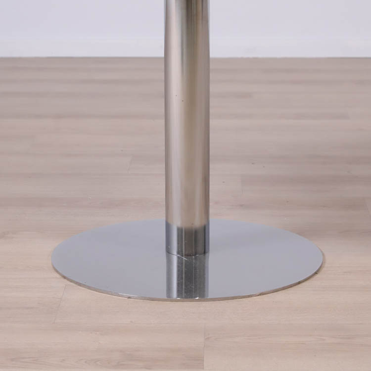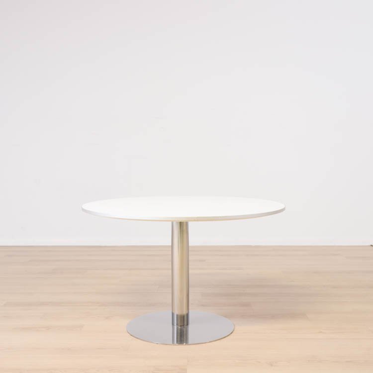 Plain med rund skiva i vitt med silverkant är ett bord som med dess karaktäristiska, maffiga pelarstativ i krom ger bordet ett ståtligt intryck. Vit skiva som ger rummet luft och bjuder in till samtal. Placera bordet i personalrummet där kollegorna kan avnjuta sin lunch eller i loungerummet där de sociala mötena kan ta plats. Bordet är designat av Alexander Lervik för Johanson Design.