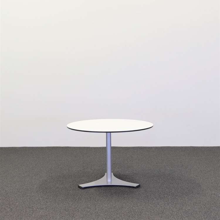 Bordsskivan är tillverkad i vitt HPL laminat med svart kantlist som tillsammans med det pulverlackerade stativet i silvergrått gör bordet trendsäkert och stilrent. Stativet är utrustat med inbyggda möbeltassar för att skydda golvytan från repor och slitage.