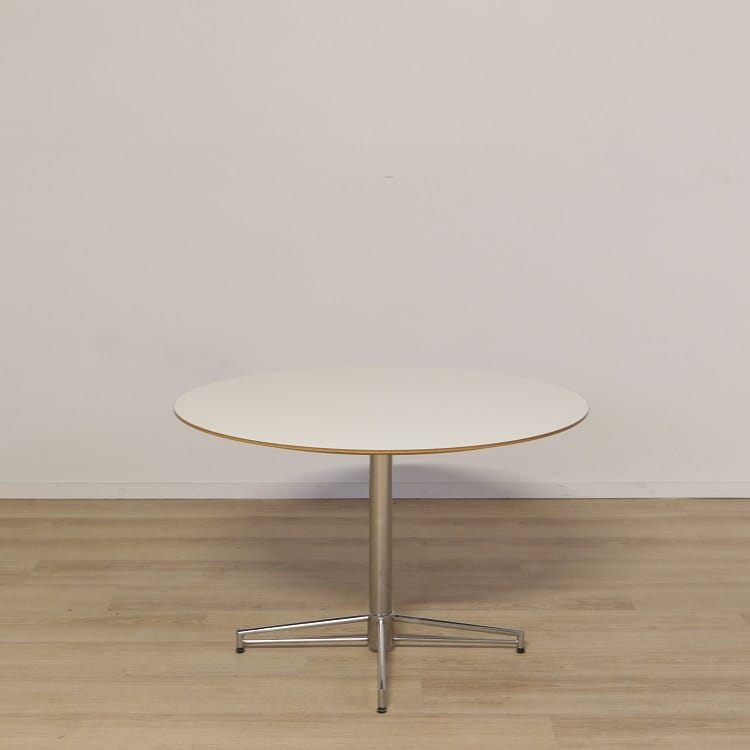 Serien X-bone lanserades 2008 och är ett gediget konstruerat bord med elegant och stilfull design. Bordsskivan Discus är en rund vit bordsskiva i slittålig, vit laminat och fasad träkant som ger bordet en varmare känsla samt en mjuk övergång mellan bordsytan och stativet.