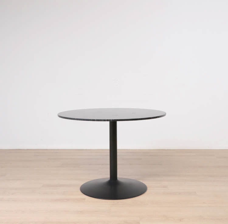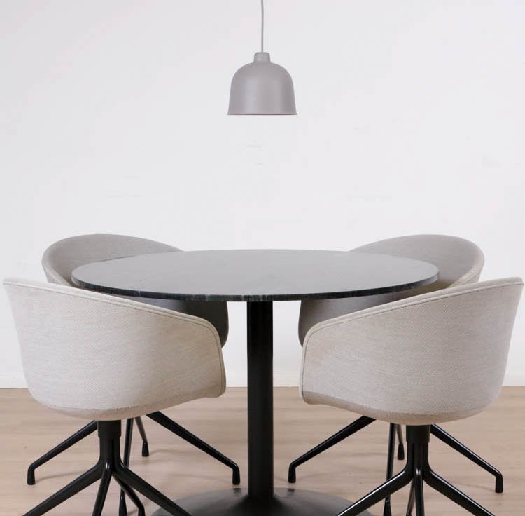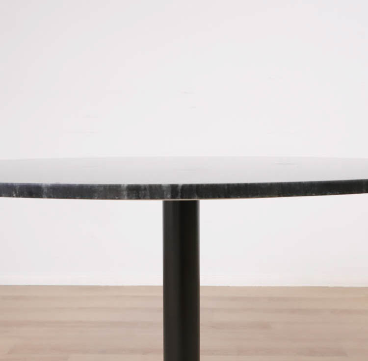Upplev skönheten i marmorns unika sten, vars naturliga mönster och nyanser skapar en visuell symfoni som är lika unik som varje stund. Varje hugg och slinga i stenen berättar sin egen historia, vilket gör varje sittning vid Plaza till en resa genom tid och natur. Den pulverlackerade svarta trumpetfoten utgör inte bara en robust och stabil bas för bordet utan skapar även en elegant kontrast till marmorens rika nyanser. Det är en visuell harmoni mellan det moderna och det tidlösa, skapat med skickligt hantverk och omsorgsfull design av skånska möbelmästare.