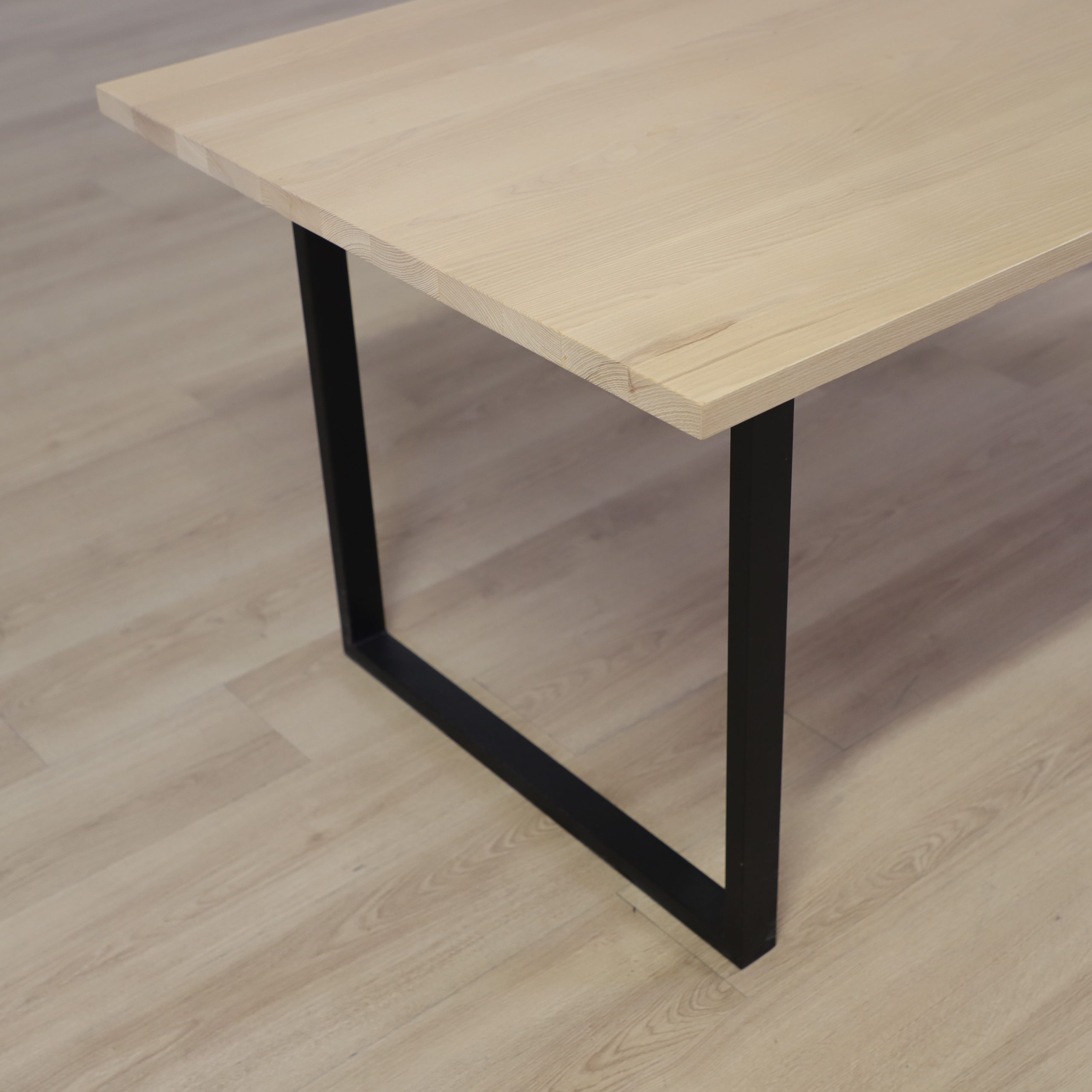 Bordsskivan i massiv limträskiva framhäver träets naturliga skönhet och blir en perfekt kombination till de robusta pulverlackerade aluminium benen. Med sin tidlösa design och flexibla användningsområden är detta bord ett utmärkt val för den stilmedvetna.
