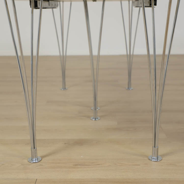 Superellips är ett stilrent och flexibelt matbord designat av Bruno Mathsson i samarbete med Piet Hein och Arne Jacobsen. Med sin ikoniska mjukt rundade form och eleganta uttryck passar det perfekt i både vardagsrum och matsalar.