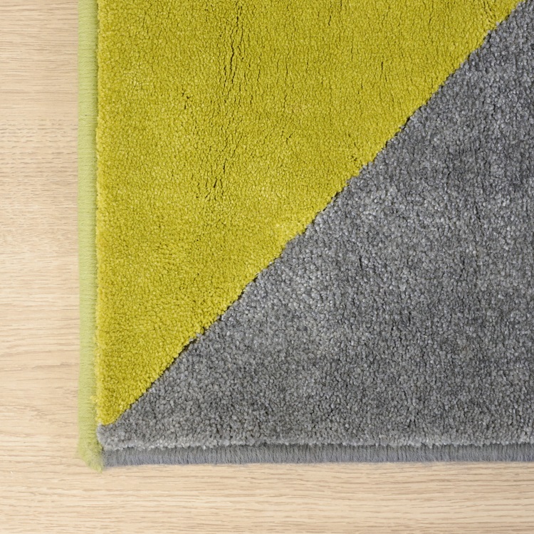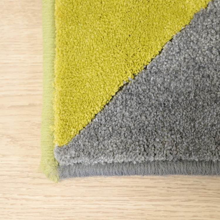 Matta i måtten 450×400 cm från Vorwerk med en diagonalt uppdelad färgsättning i grått och en stark gul färg med grön underton. Tillverkad av tyska Vorwerk som är experter på att skapa mattor på offentliga miljöer med god hållbarhet och kvalitet.