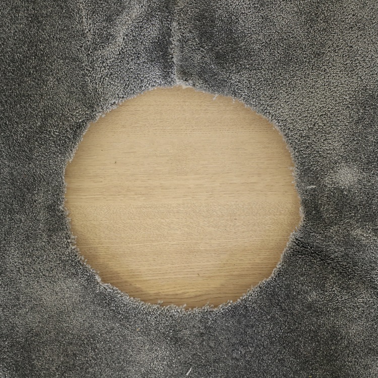 Mattan har ett utskuret hål med en diameter om 28 cm, se bilder i produktannonsen.
