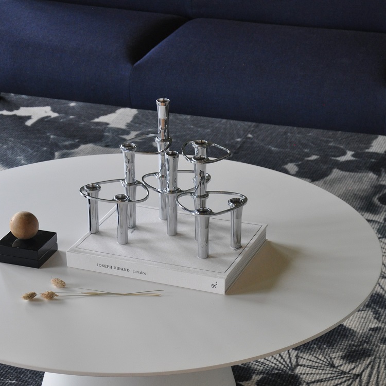 Mönstret i mattan tolkas annorlunda av samtliga betraktare. Kanske ser du solen som bryter genom molnen efter tungt regn, eller böljande vågor som står i kontrakt till en annars mörk himmel? Tryckt på en vävd matta i ren ull och blir tongivande för resterande inredning, ett riktigt smycke för rummet där mattan placeras. Det stora formatet passar perfekt i entré- och receptionsmiljöer eller i det större konferensrummet