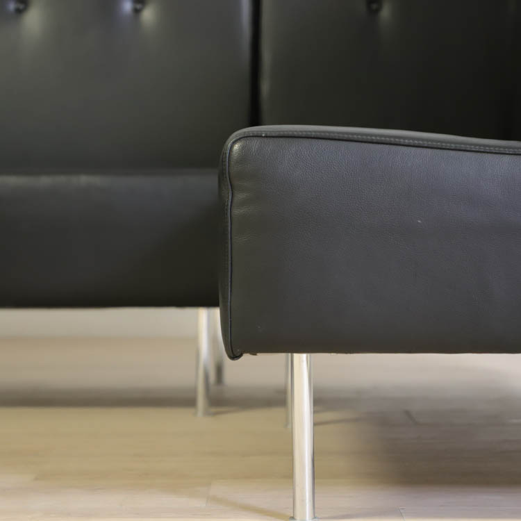 Soffan är klädd i exklusivt svart läder och står stadigt på eleganta kromade ben, vilket ger ett sobert och professionellt intryck. Bistro andas svensk designkvalitet och blir ett självklart blickfång i alla moderna arbetsmiljöer där komfort och karaktär går hand i hand.