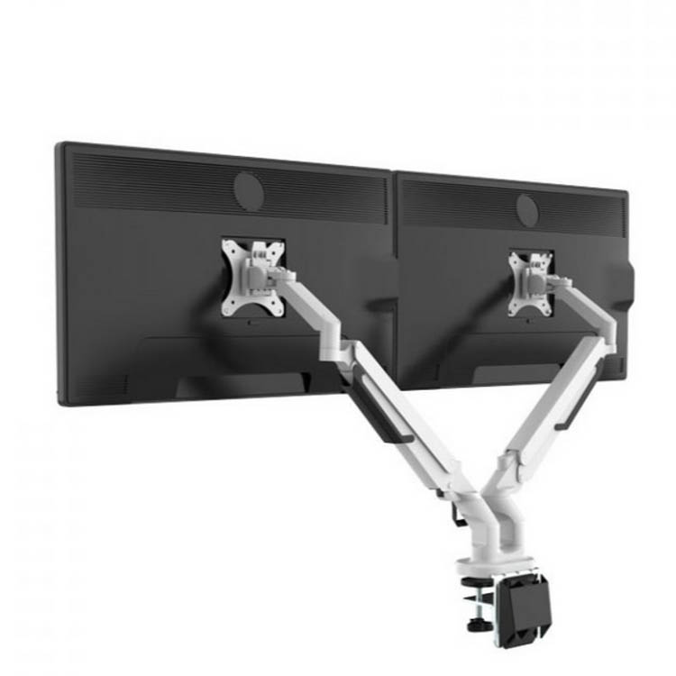 Monitorarmen EASY är utformad med två sammanlänkade armar för att effektivt hålla två displayskärmar med en rekommenderad maximal belastning på 2-9 kg vardera. Denna design möjliggör bekväm användning av skärmar med en storlek på 17 till 32 tum, vilket är vanligt förekommande i kontorsmiljöer. En typisk modern skärm av 32 tum väger endast cirka 4 kg. Med hjälp av gasfjädringssystemet i armarna kan användaren enkelt justera skärmarna för att uppnå önskad vinkel och position för bästa möjliga synvinkel.