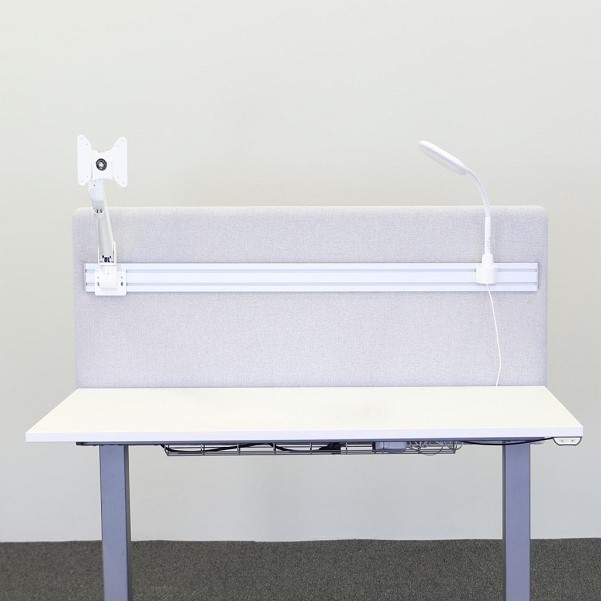 En vit monitorarm designad för att monteras direkt på en bordsskärm och erbjuder en smart, platsbesparande lösning som förhöjer både ergonomi och estetik. Genom att lyfta skärmen från bordsytan skapas ett renare och mer organiserat arbetsutrymme, samtidigt som du får möjlighet att justera höjd, lutning och vinkel för en optimal arbetsställning.