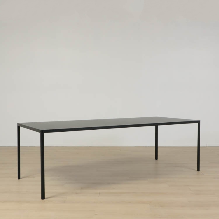Stilrent och rymligt bord med en svart yta som ger en modern och professionell känsla. Med måtten 240 x 100 cm och en höjd på 75 cm erbjuder det gott om plats för effektiva möten och samarbeten. Stabil konstruktion och högkvalitativa material säkerställer hållbarhet och komfort. Perfekt för konferensrum och kontorsmiljöer eller som matbord.