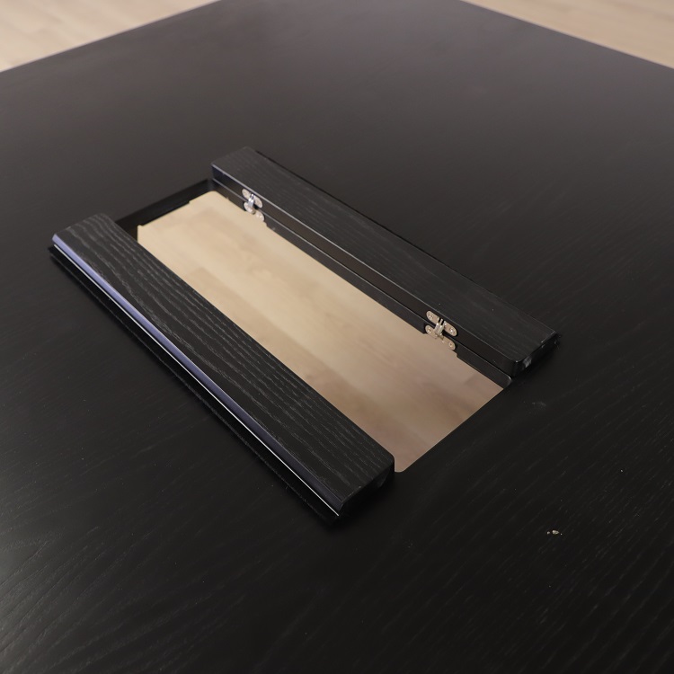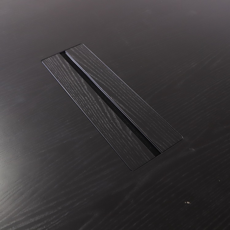 Bordsskivan består av 22 mm träfiber toppad med slitstarkt högtryckslaminat– ett hållbart, smutsavvisande och ljusbeständigt material som står emot repor, samtidigt som det är enkelt att hålla rent med en fuktad trasa. På bordskivan så finns kabellucka samt medföljande kabelkorg i tyg.