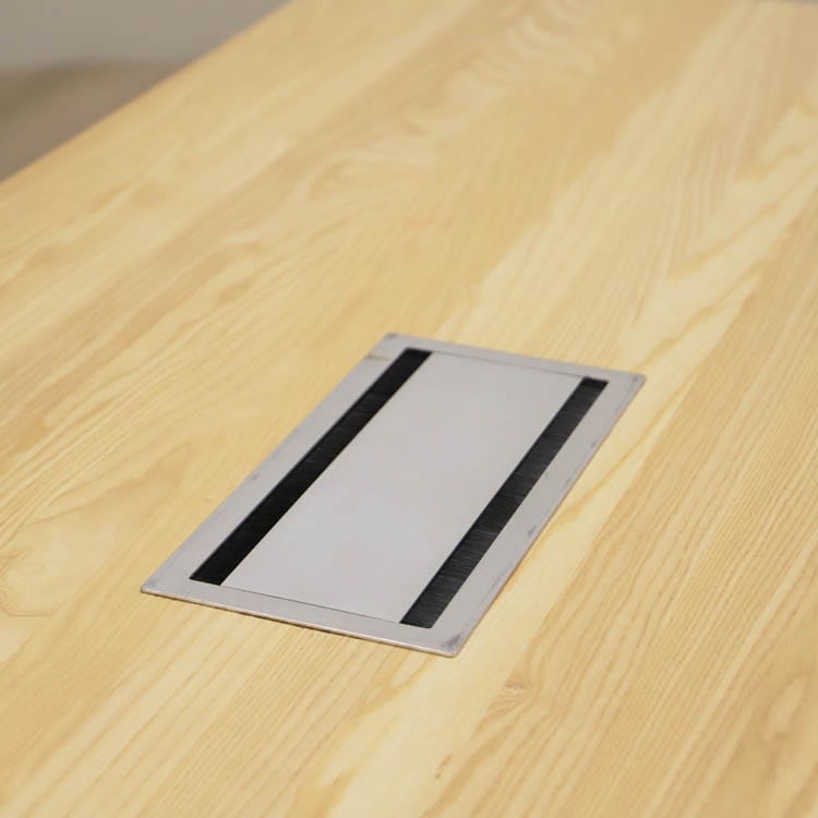 Size mötesbord från Blå Station, formgivet av Thomas Bernstrand är ett bord med mäktiga träinslag som satts samman till en möbel väl värd att beskåda. Bordet kommer i massiv ask med förkromade beslag och kan fylla miljöer där möten av olika slag tar plats. Centrerat på bordet finns en kabellucka placerad som tillåter alla typer av elektrisk anslutning att enkelt kunna anslutas.