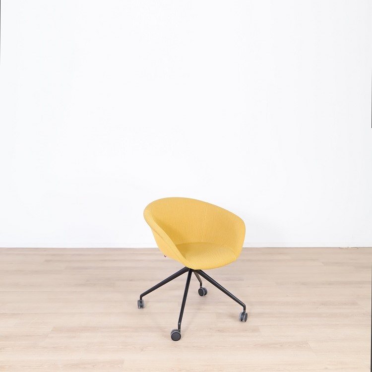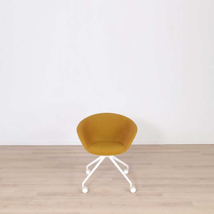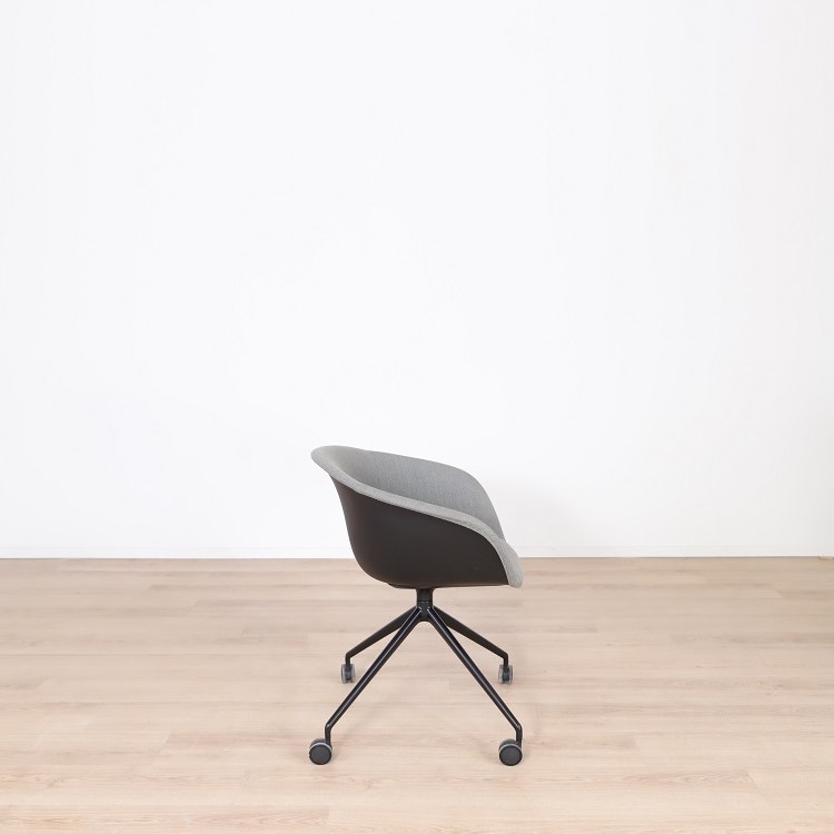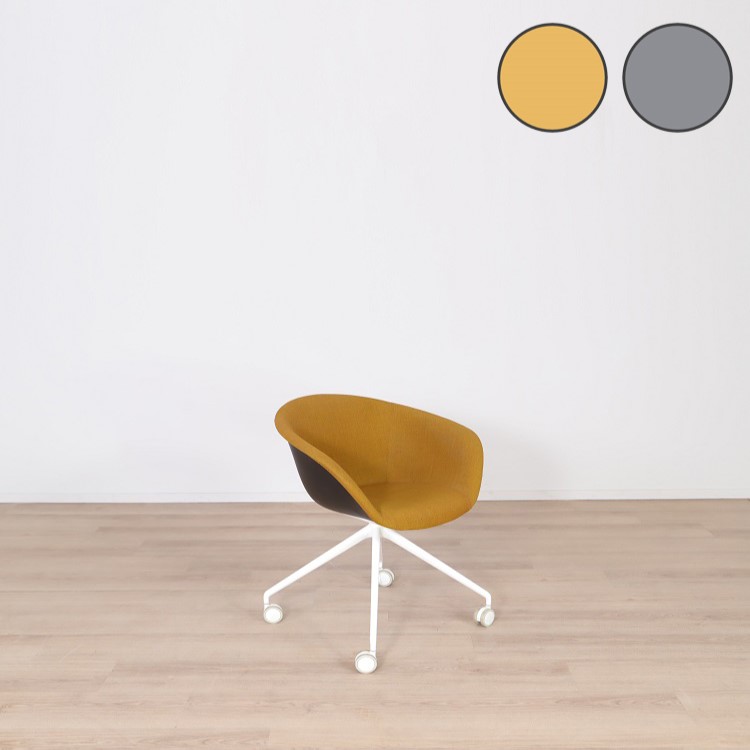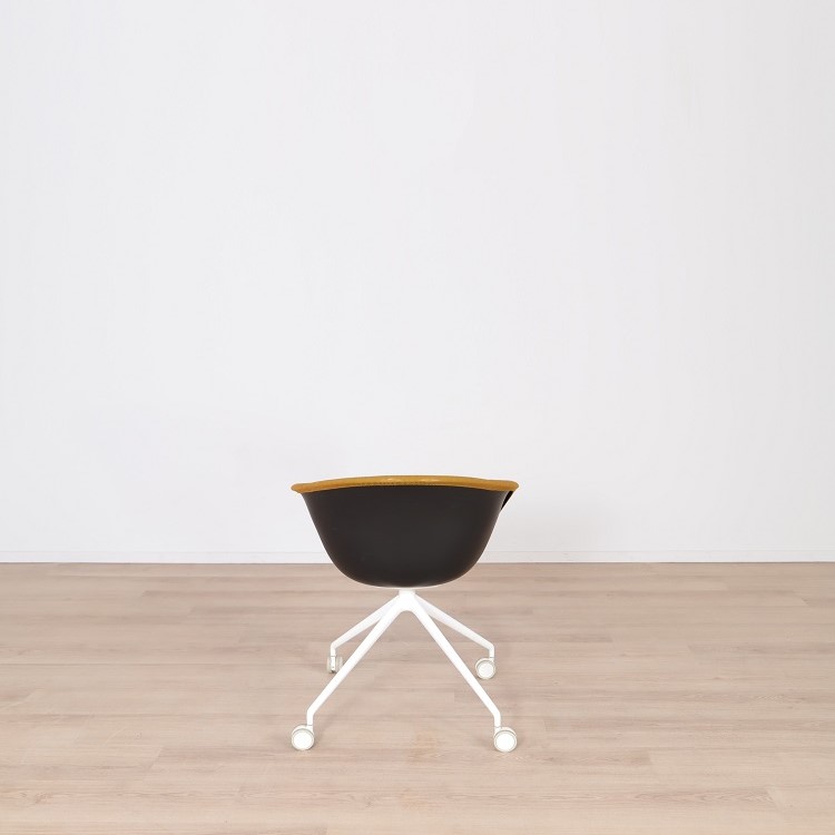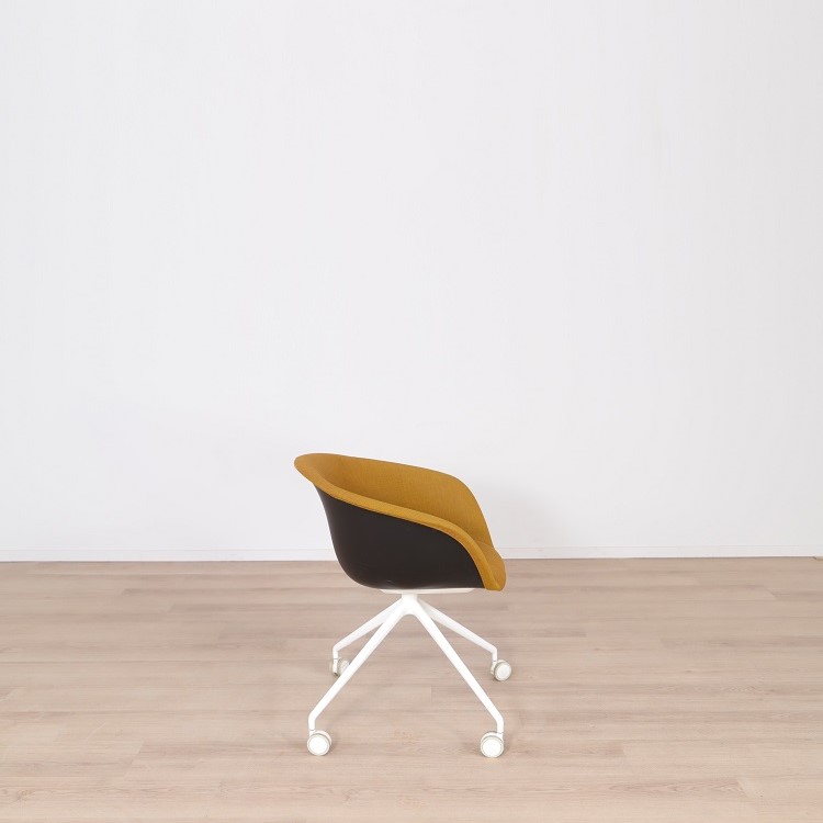 Mötesstol Duna 02 från Arper med design av Lievore Altherr Molina är en stol med enkla och mjuka former som skapar en avslappnande atmosfär i exempelvis caféet eller restaurangen. Detta utförande har ett skal i polypropen med tre olika färgsättningar, brun med vita ben, gul med svarta ben samt grå med svarta ben. Alla stolarna kommer med mjuka hjul vilket gör möbeln lättanvänd för omplacering.
