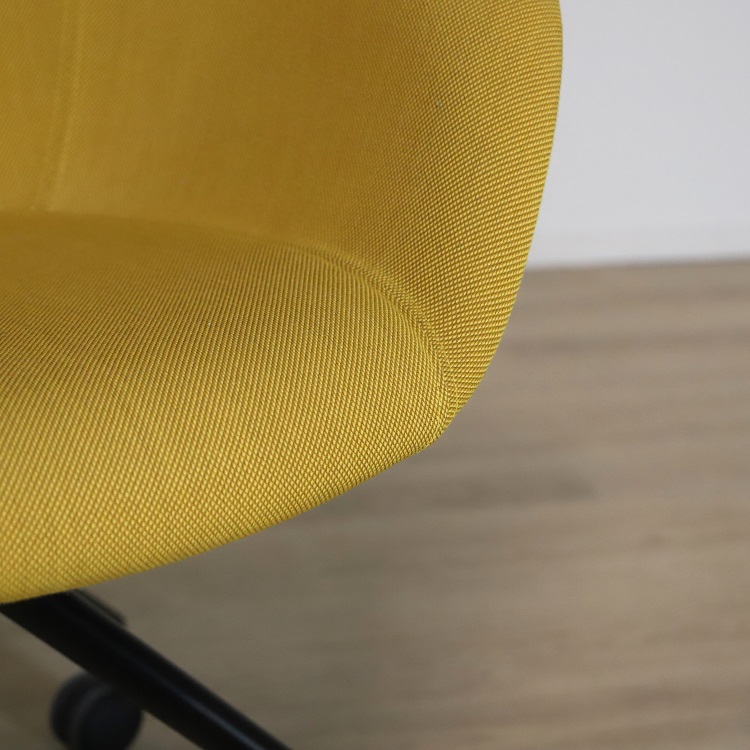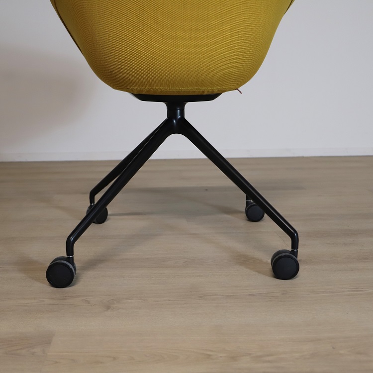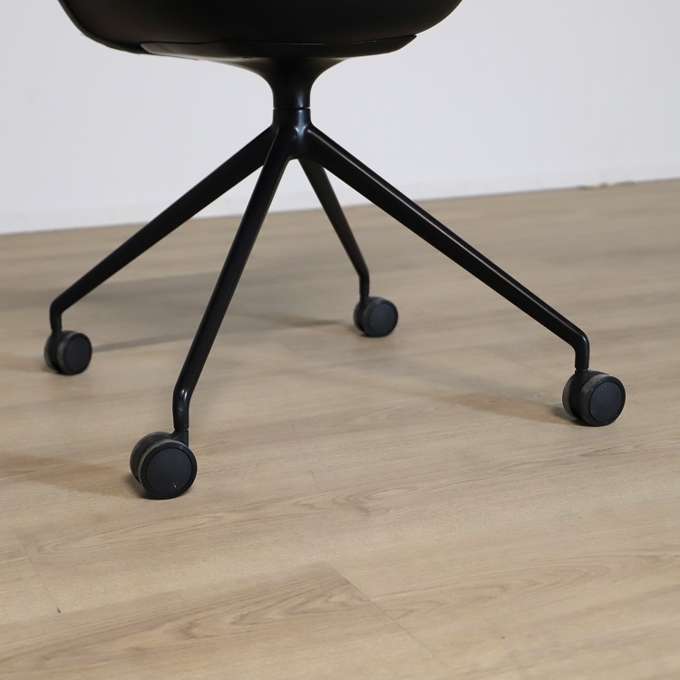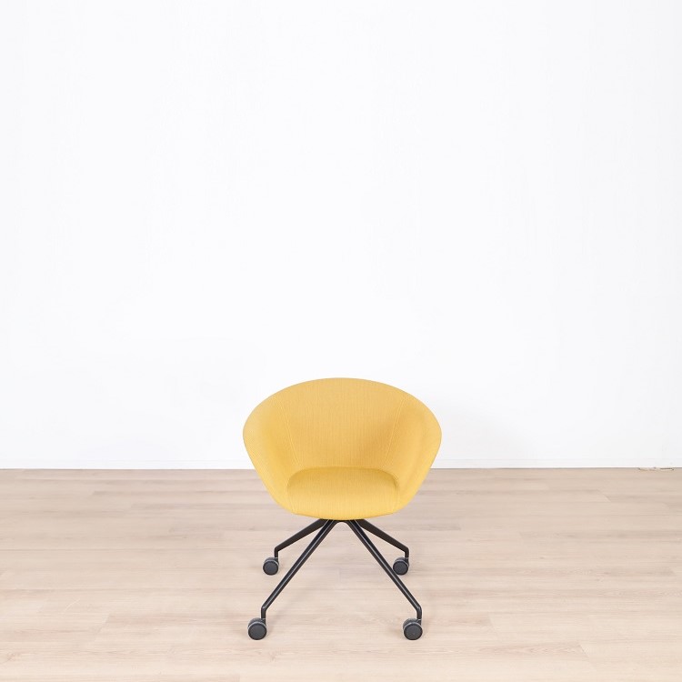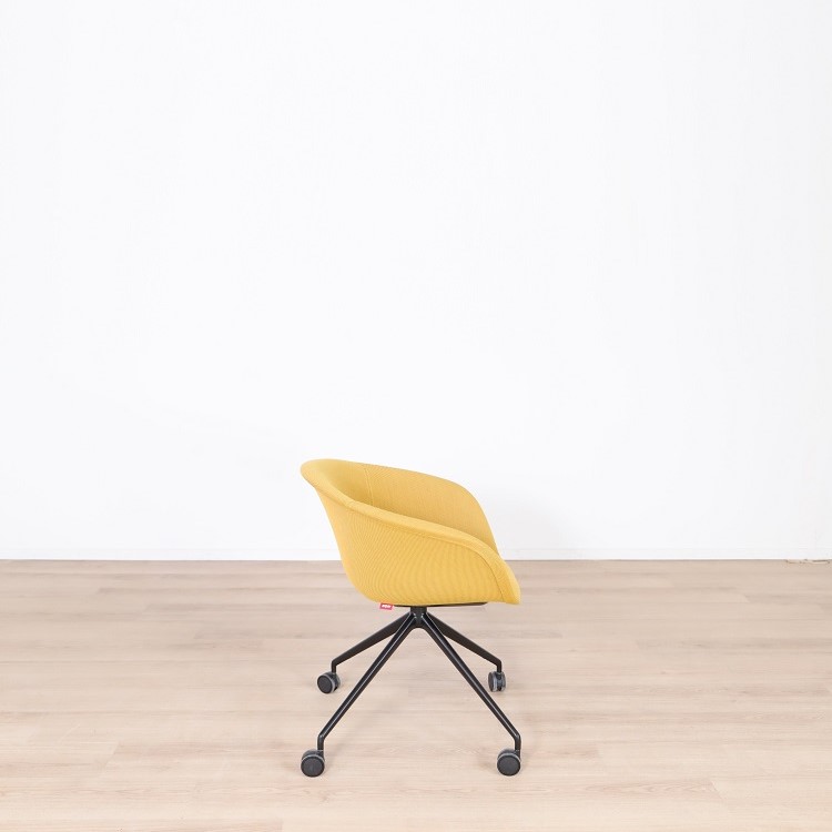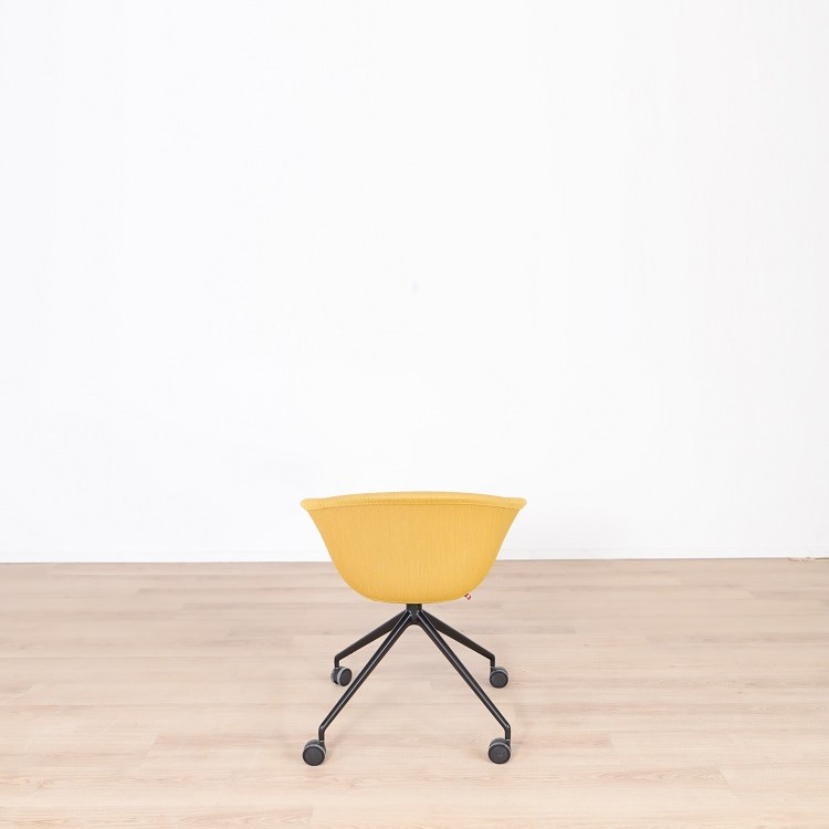 Mötesstol Duna 02 från Arper med design av Lievore Altherr Molina är en stol med enkla och mjuka former som skapar en avslappnande atmosfär i exempelvis caféet eller restaurangen. Detta utförande har ett skal i polypropen med tre olika färgsättningar, brun med vita ben, gul med svarta ben samt grå med svarta ben. Alla stolarna kommer med mjuka hjul vilket gör möbeln lättanvänd för omplacering.