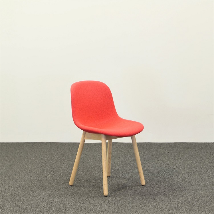 NEU från danska HAY är en bekväm stol med gjutet skal, svarvade ben och stoppad sits. Klädseln kommer i en härligt, tongivande röd kulör som piggar upp och har samtidigt en dekorativ söm som framhäver den mjuka siluetten. Passar lika bra i mötesrummet som i loungen eller vid en cafésittning.