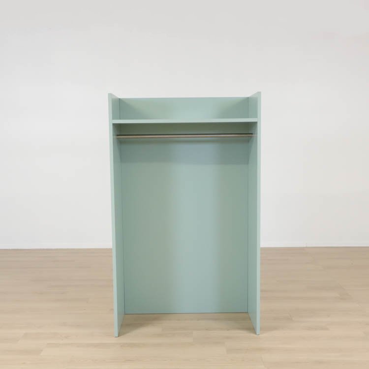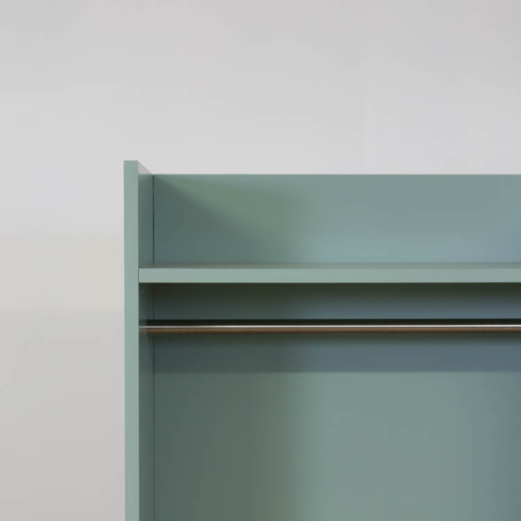 Skåpet har en öppen förvaringslösning och är utrustat med en robust stång för att hänga dina favoritkläder. Från klänningar och kostymer till skjortor och jackor. Förvaringen innehåller även ett hyllplan där plats för accessoarer finns.
