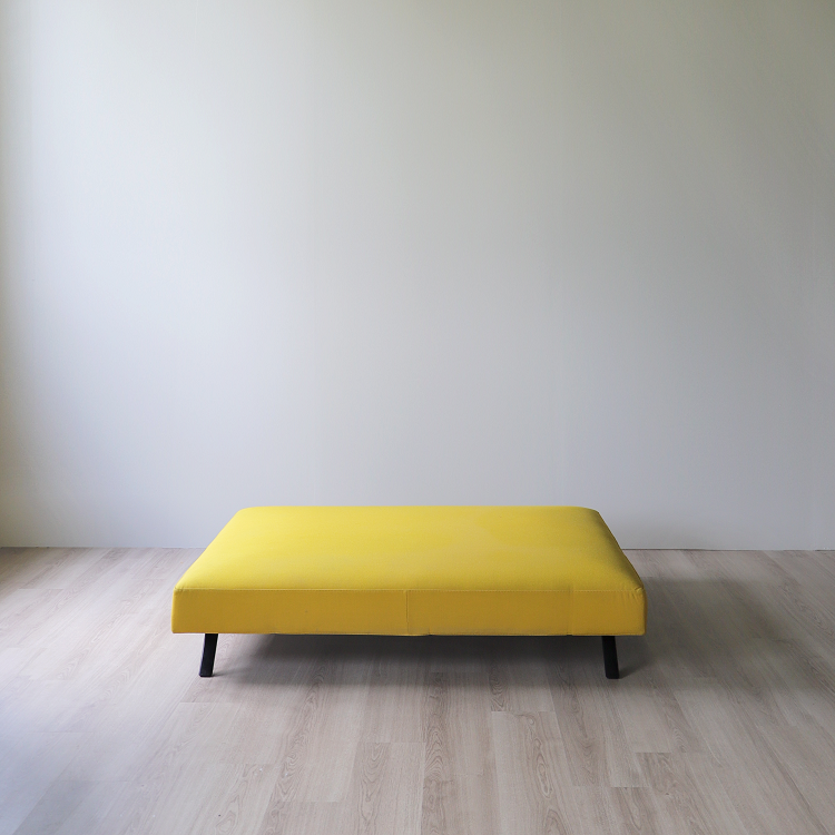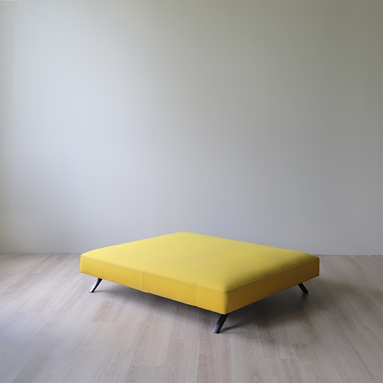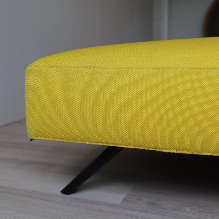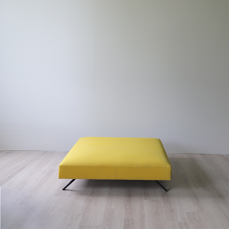 Låg ottoman i gult från italienska Arper som passar för lounger, väntrum och andra miljöer där människor väntar eller småpratar. Ottomanen har fyra ben av svart tryckgjuten aluminium. Bryt av inredningen med den här färgstarka pallen eller matcha med andra ottomaner. Design av Iwasaki Design Studio.