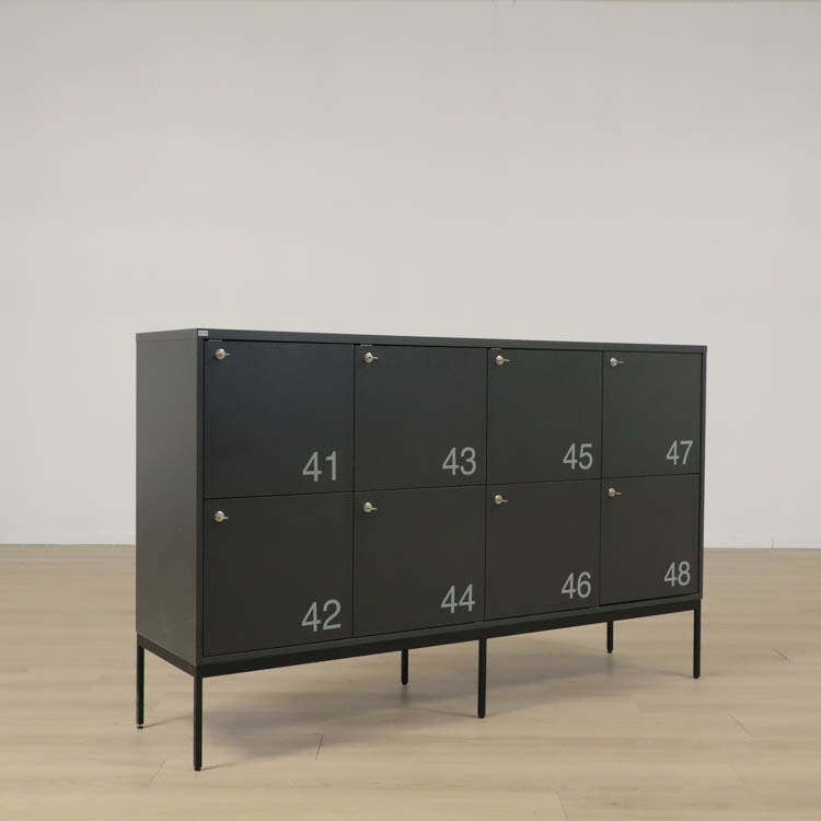 Skåpen är utrustade med effektiva nyckellås som garanterar trygg och säker förvaring av personliga tillhörigheter. Skåpet har separata låsbara fack, vilket gör det enkelt att organisera och hålla ordning. Konstruktionen är robust och tillverkad i material av hög kvalitet, vilket säkerställer lång livslängd och motståndskraft mot slitage.