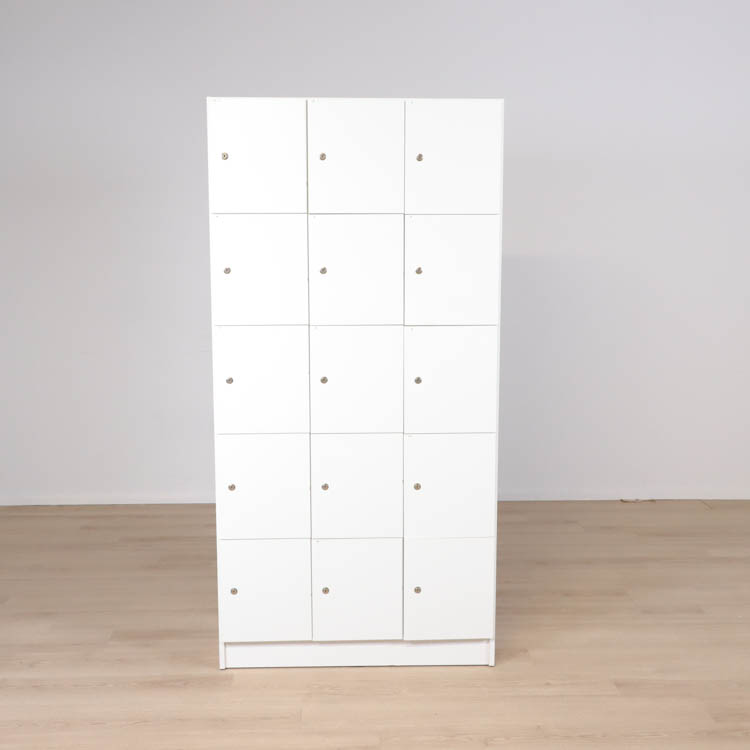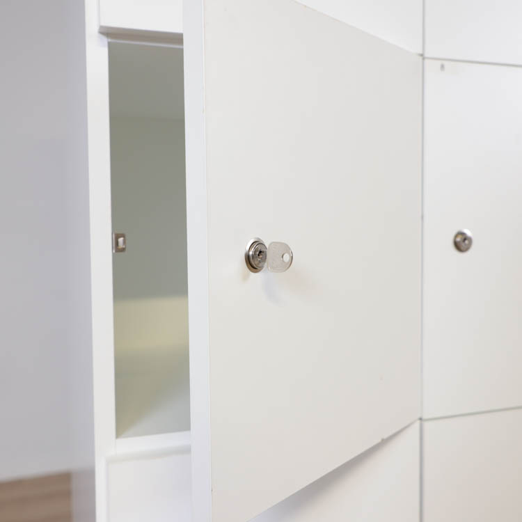 Fint bruksskick! Personalskåpet har 15 förvaringsutrymmen där två av nycklarna fattas.