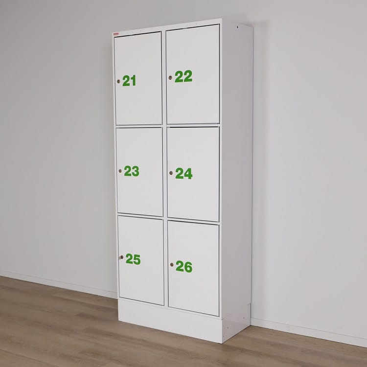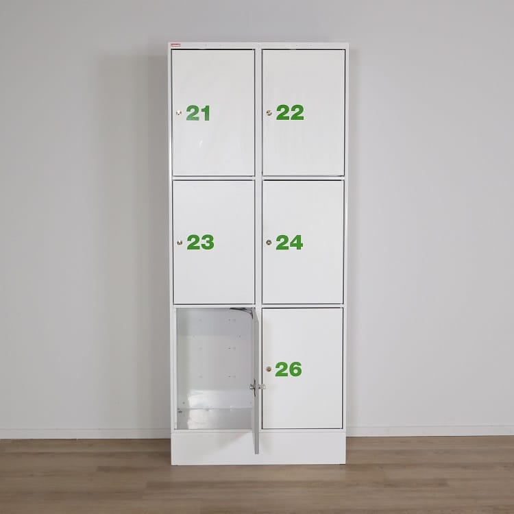Varje förvaring har 6 st skåp med lucka, vilket gör det enkelt för personalen att förvara kläder, väskor och andra förnödenheter under arbetsdagen. Nätta skåp med generös höjd som passar perfekt om man har ont om plats i personalrummet, kapprummet eller omklädningsrummet.