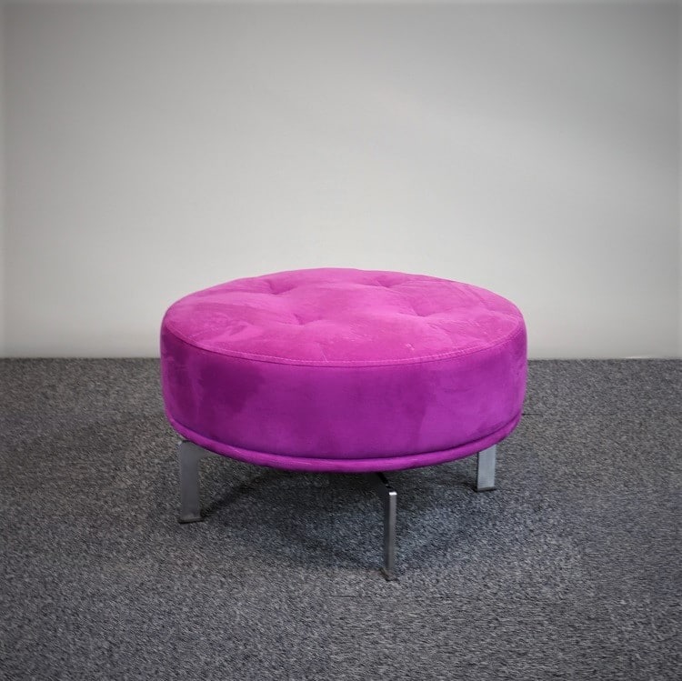 Den här lyxiga puffen från det danska tillverkaren Erik Jörgensen utstrålar verkligen kvalité i sina materialval. Från de förkromade benen i putsad aluminium till den textilbeklädda sittytan i cerise med detalj sömmar. Den ger ett lyft i allt från entrémiljöer, hotellobbyn eller vid receptionen.