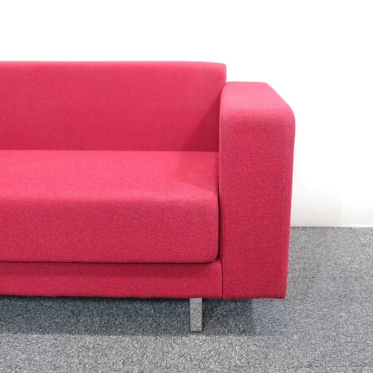 En riktigt härlig soffa från Martela som man bara vill sjunka ned i. Hög komfort genom mjuka kuddar och med plats för åtminstone 4 personer och klädd i ett knallrött tyg som piggar upp.