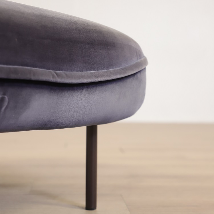 Rund ottoman som passar perfekt hemma i vardagsrummet eller i loungen på kontoret.  Dess mjuka men robusta design gör den idealisk som extra sittplats, fotpall eller ett elegant inredningselement. Ottomanen är kvadratisk med rundade hörn vilket gör den enkel att möblera med och dessutom ger en generös sittyta. Kommer i en varmgrå kulör samt ett blått sammetstyg som ger ett vackert skimmer och en dimension till inredningen. Den neutrala färgen gör det dessutom enkelt att kombinera med andra möbler, eller varför inte en i vardera färg?