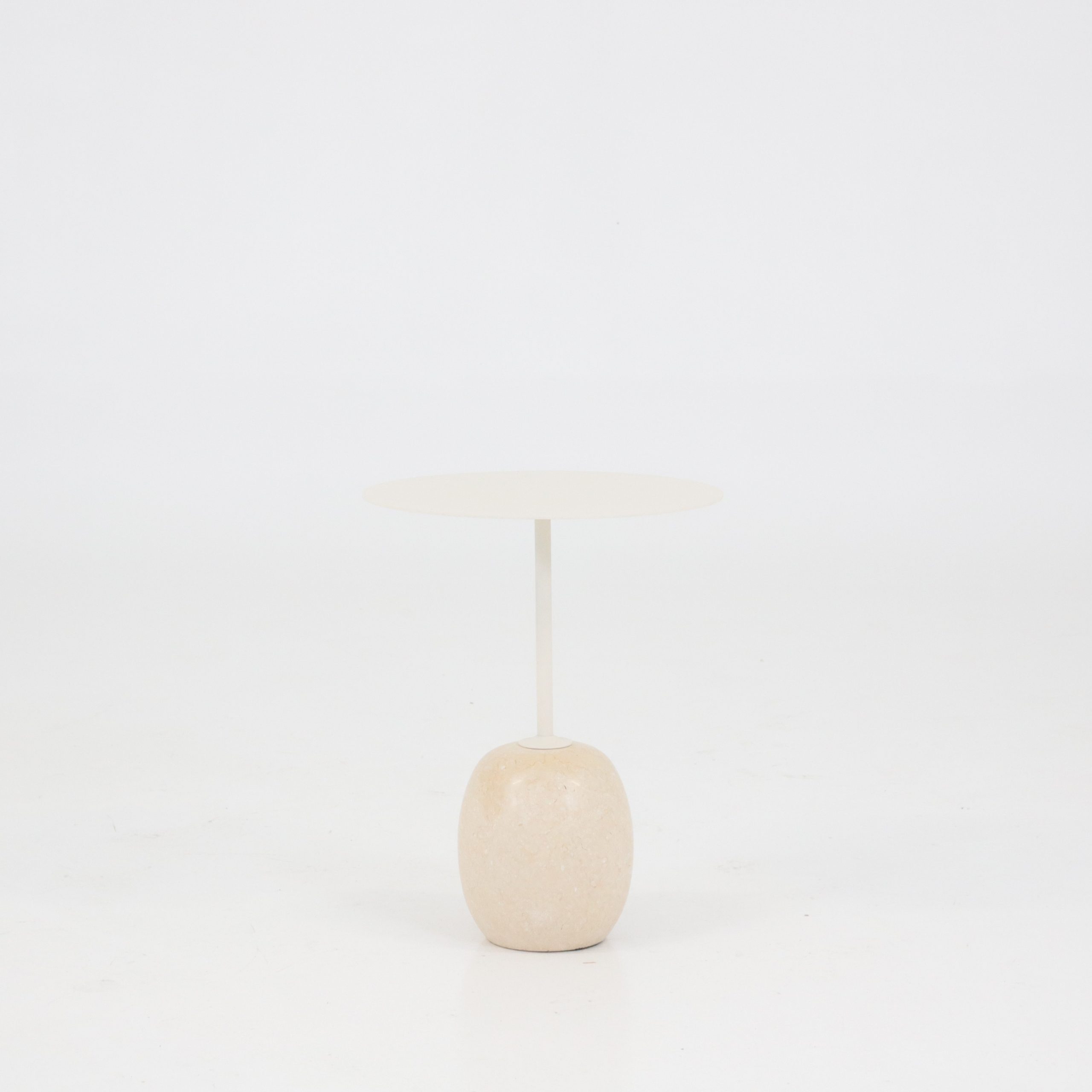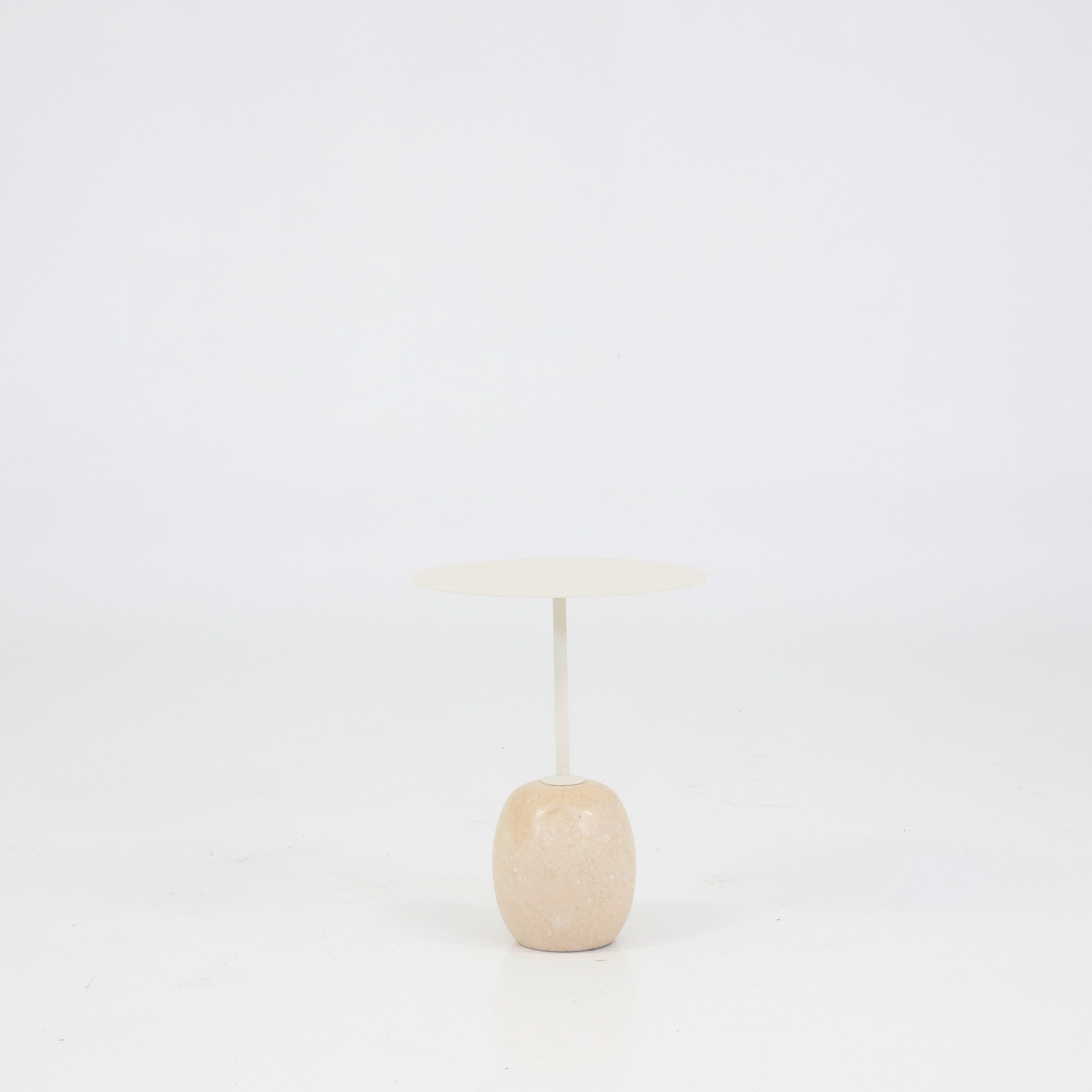 &Traditions Lato LN8 kommer med en kraftig fot av marmor. Dessa kommer i sin tur med ett stativ och en bordsskiva i pulverlackerat stål, där helheten går i en behaglig beige nyans som ger bordet dess tidlösa uttryck.