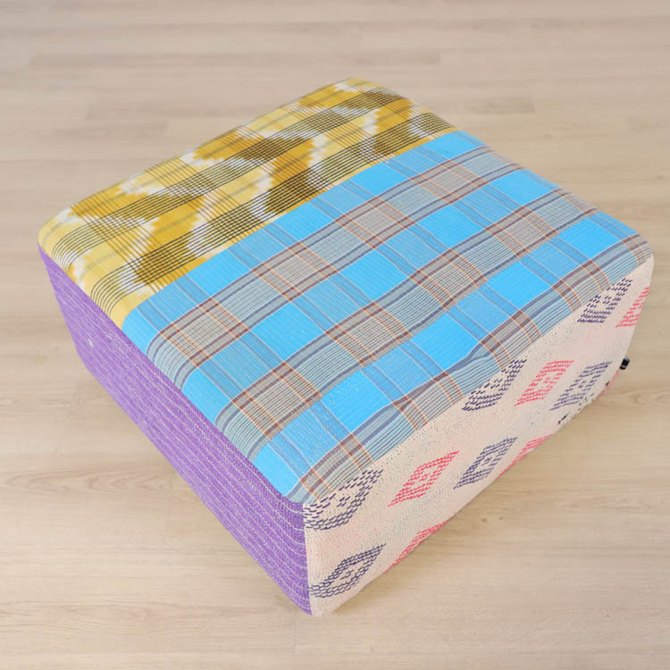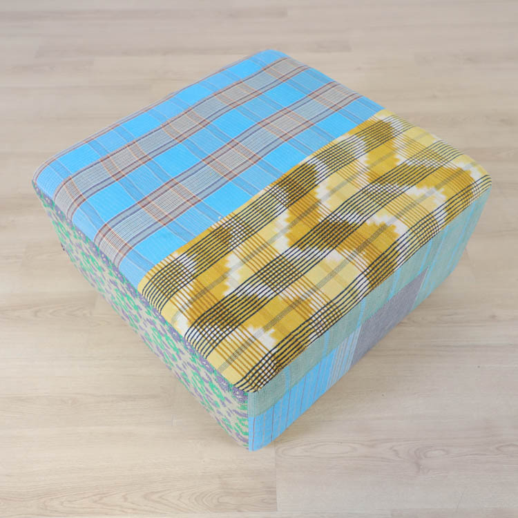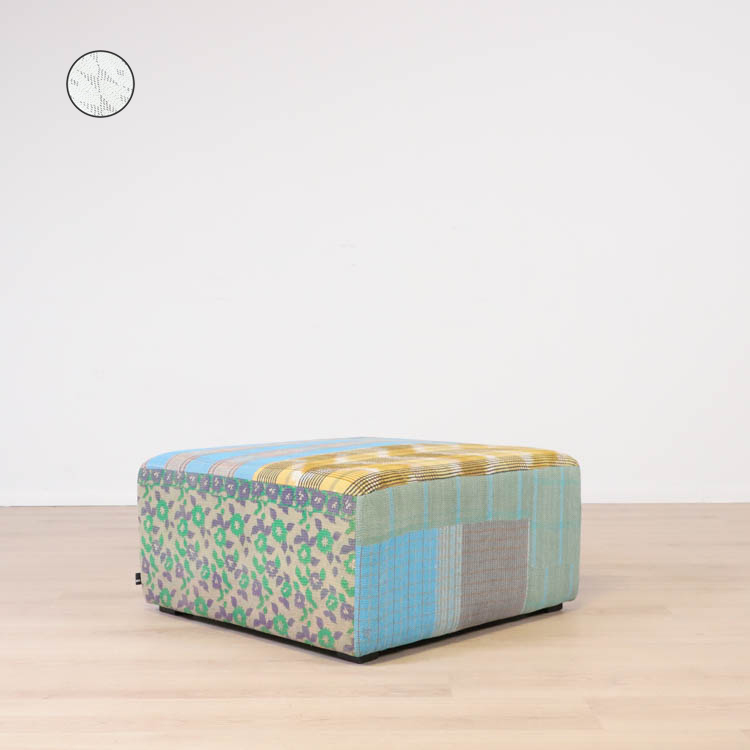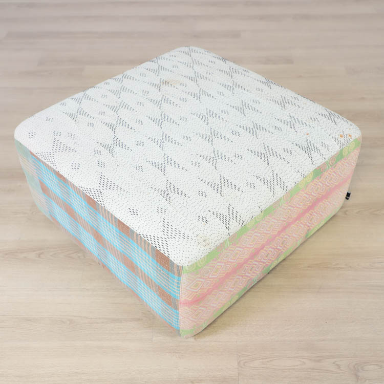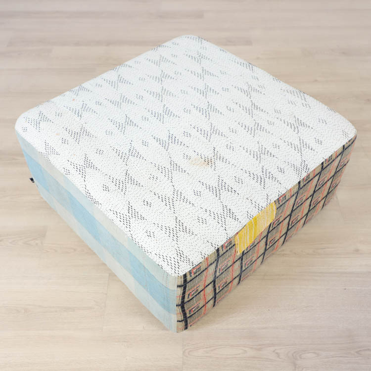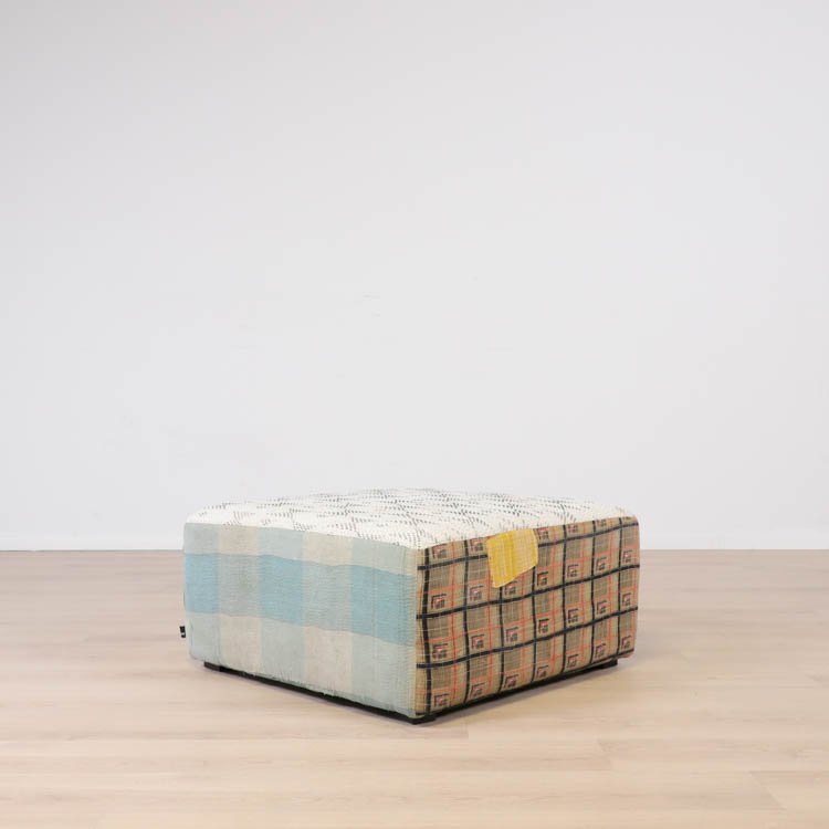Vänligen notera att ottomanerna är designade med återbrukade tyger i flera lager för att de dem känslan av att vara vintage.