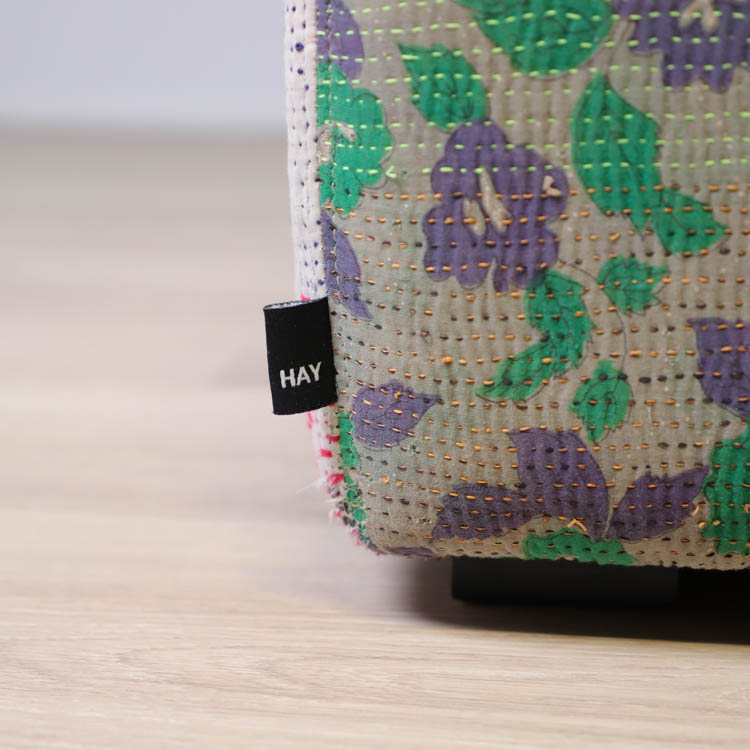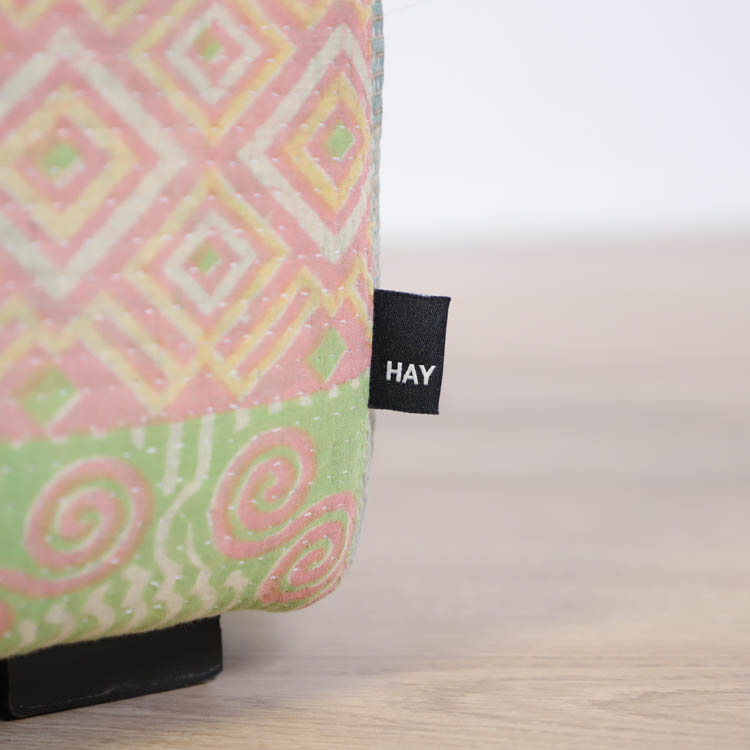 Sittpuff Antique Quilt Ottoman från HAY kommer i flerfärgat utförande, tillverkade av återvunna tyger vilket gör varje enskild puff unik. Antique Quilt är tillverkad av flera lager tyg, vilket gör att dessa framhävs på ett fantastiskt livfullt sätt vid tunnare partier av de övre lagret tyg. Tygerna som används kommer i flera härliga kulörer och mönster, som från början kommer från saris som burits av kvinnor i Nepal och Indien som sedan sytts för hand under tillverkningen.