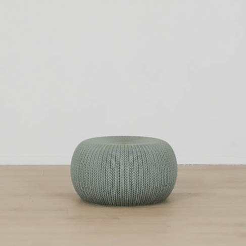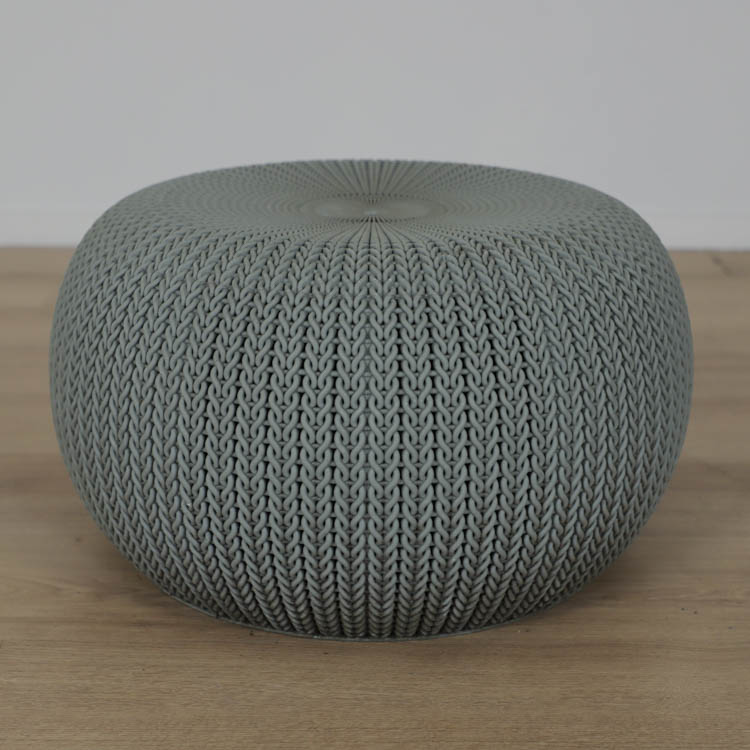 En stilren och modern sittpuff med en rund form och ett dekorativt stickat mönster, tillverkad i ett slitstarkt material. Dess mjuka men robusta design gör den idealisk som extra sittplats, fotpall eller ett elegant inredningselement. Den neutrala färgen gör att den smälter in i olika inredningsstilar och bidrar till en harmonisk atmosfär.