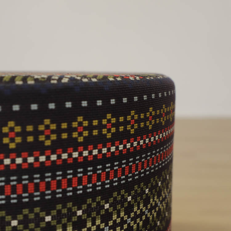 Designen präglas av ett modernt formspråk och högkvalitativa materialval. Denna sittpuffen erbjuds i två olika unika mönstrade utföranden som ger möbeln en lekfull och elegant karaktär. Dessa mönster tillför liv och personlighet till rummet, samtidigt som de harmoniserar med en rad olika inredningsstilar.