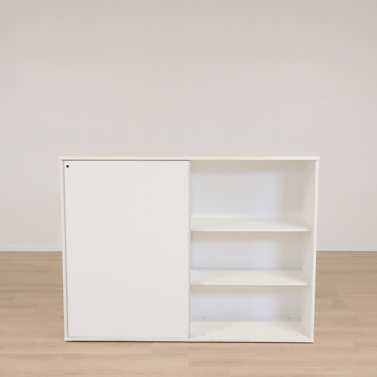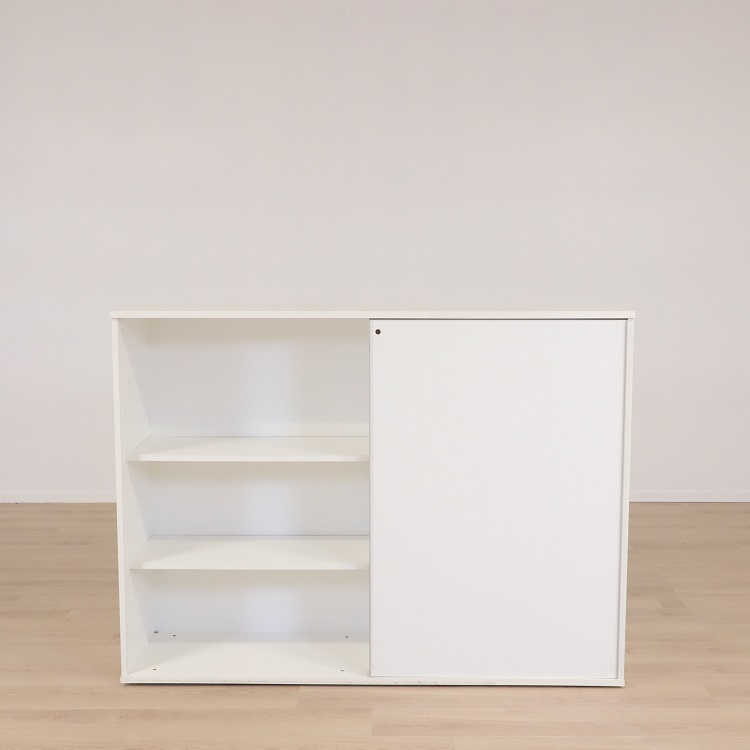En stilren förvaringsserie från Ragnars Work med skjutdörrar som effektivt spar utrymme på kontoret men ändå erbjuder generöst förvaringsutrymme. På vardera sida finns två hyllplan med perfekt uträknat utrymme för stående pärmar, vilket gör det enkelt att förvara kontorsmaterial på ett strukturerat sätt. R3 Work Cab Slide kommer i helvitt utförande, tillverkad i laminat för optimal hållbarhet.