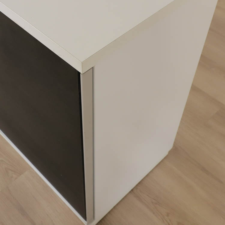 Förvaringen har en åtgärdad skada på kantlisten. Detta kan ge en estetisk avvikelse men påverkar inte möbelns funktion eller hållbarhet. För bilder och mer information, vänligen kontakta oss på [email protected]