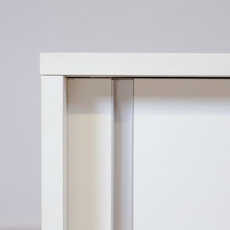 Stilren skjutdörrsförvaring i helvitt är en perfekt kombination av stil och funktionalitet. Med dess smidiga skjutdörrar tar den minimalt med plats samtidigt som den erbjuder generöst med förvaringsutrymme. Förvaringen har ett hyllplan/två fack.